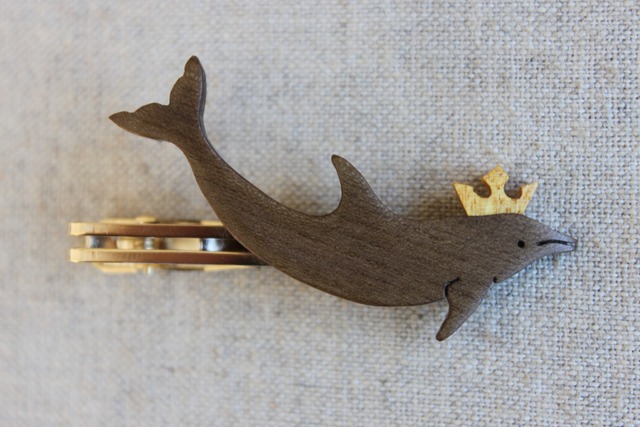 王冠を被ったイルカネクタイピン