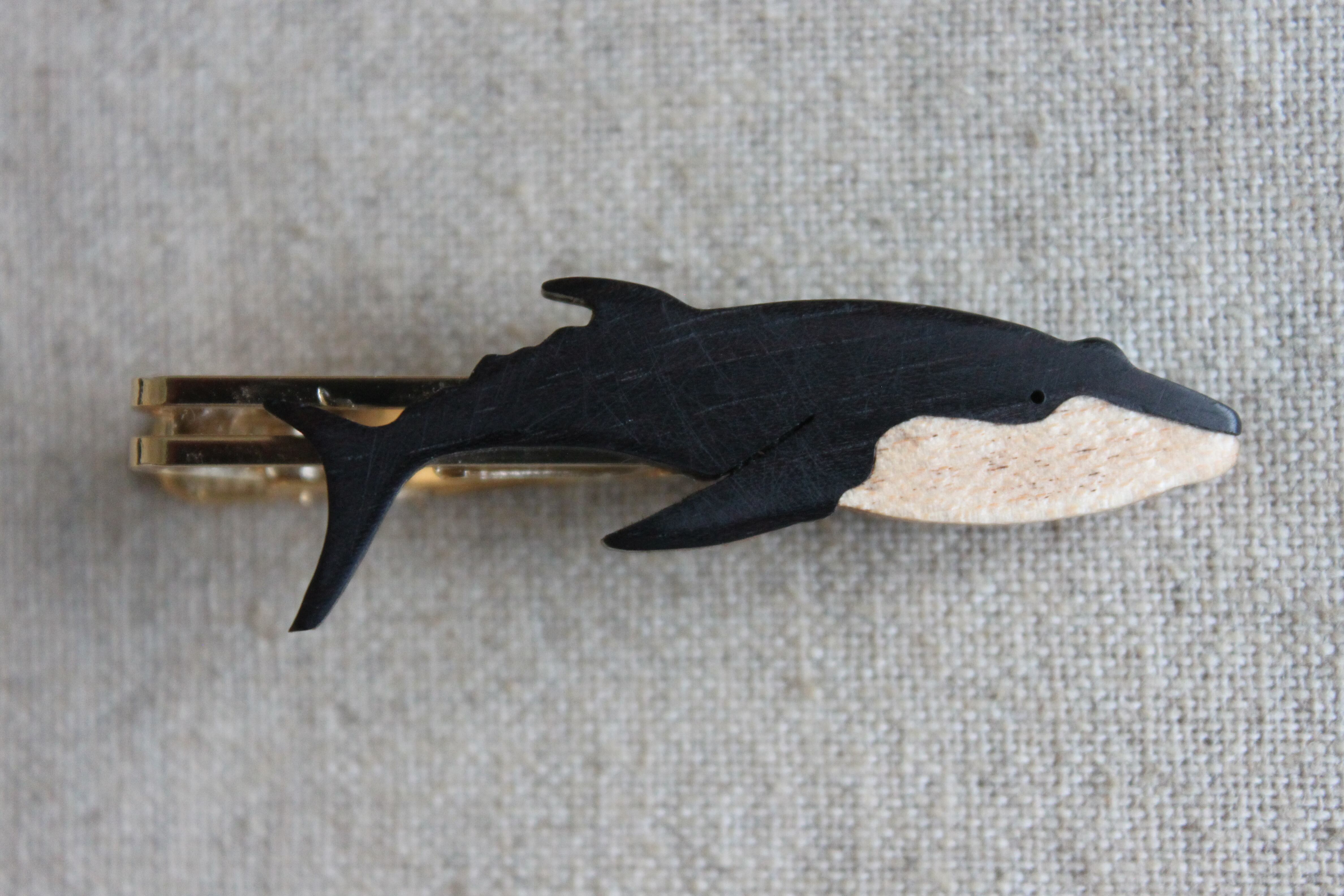 木材の木目、色を生かし丁寧に仕上げ深い光沢を持った他には無い一点物のネクタイピンです。