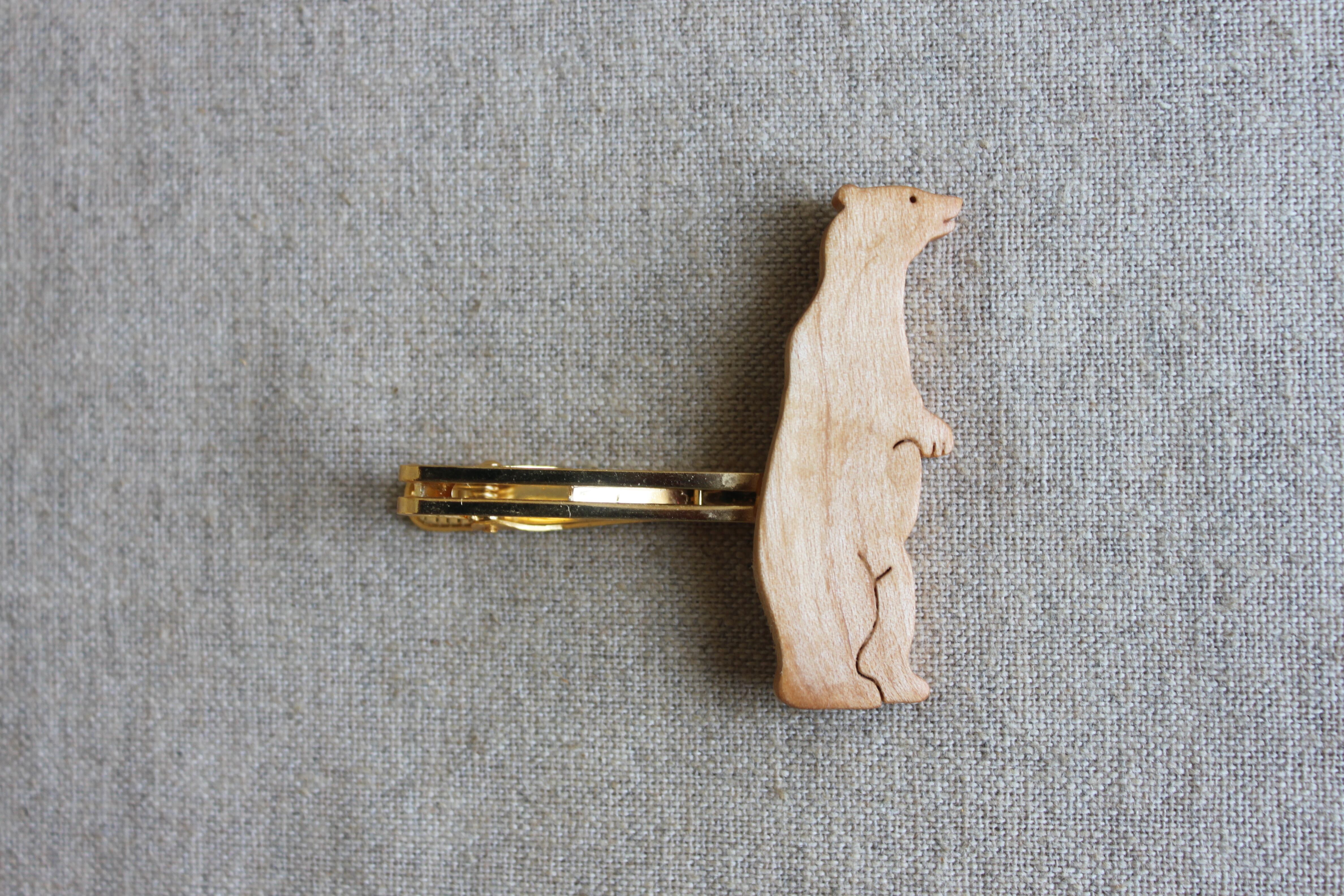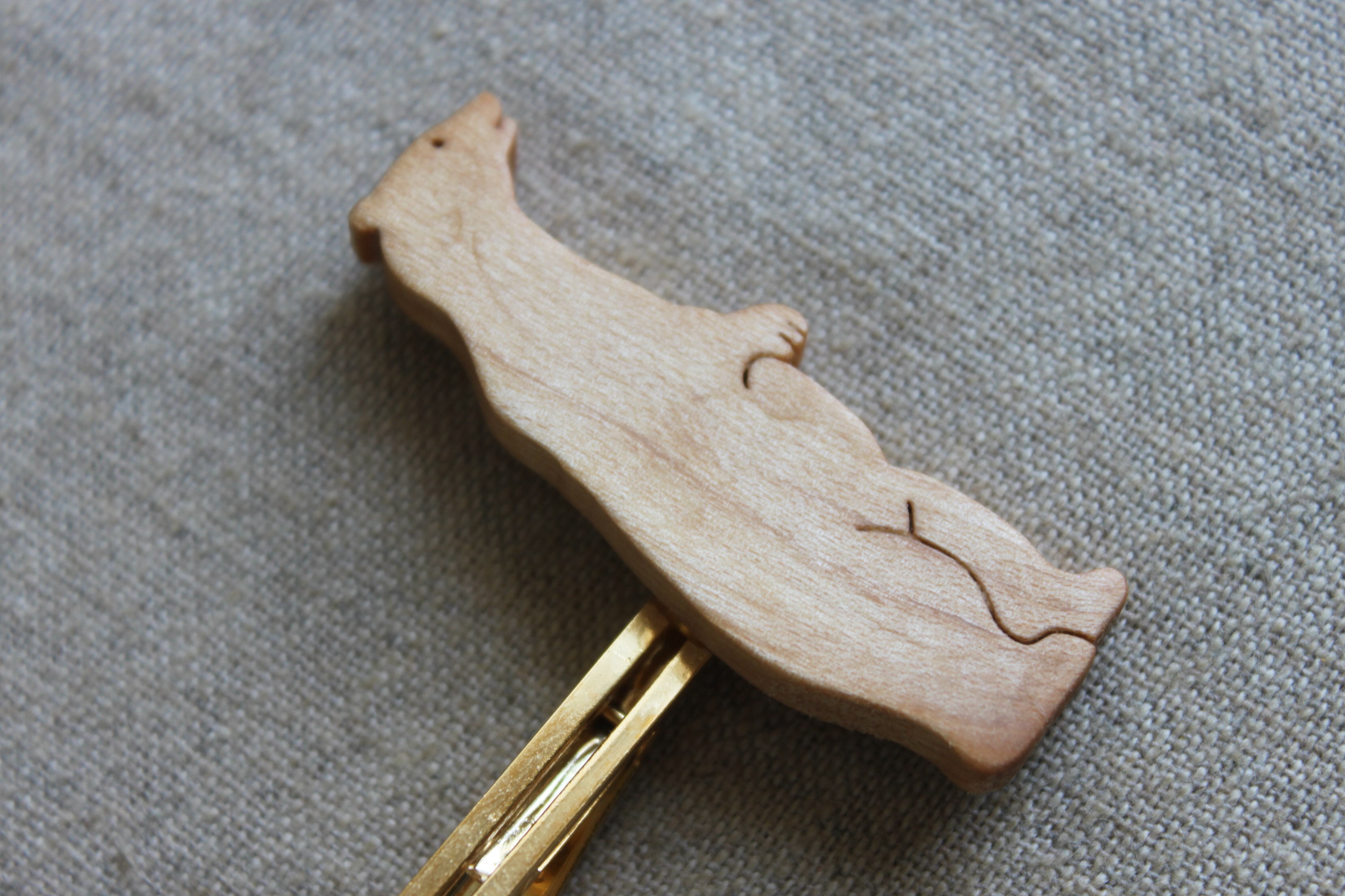 木材の木目、色を生かし丁寧に仕上げ深い光沢を持った他には無い一点物のネクタイピンです。