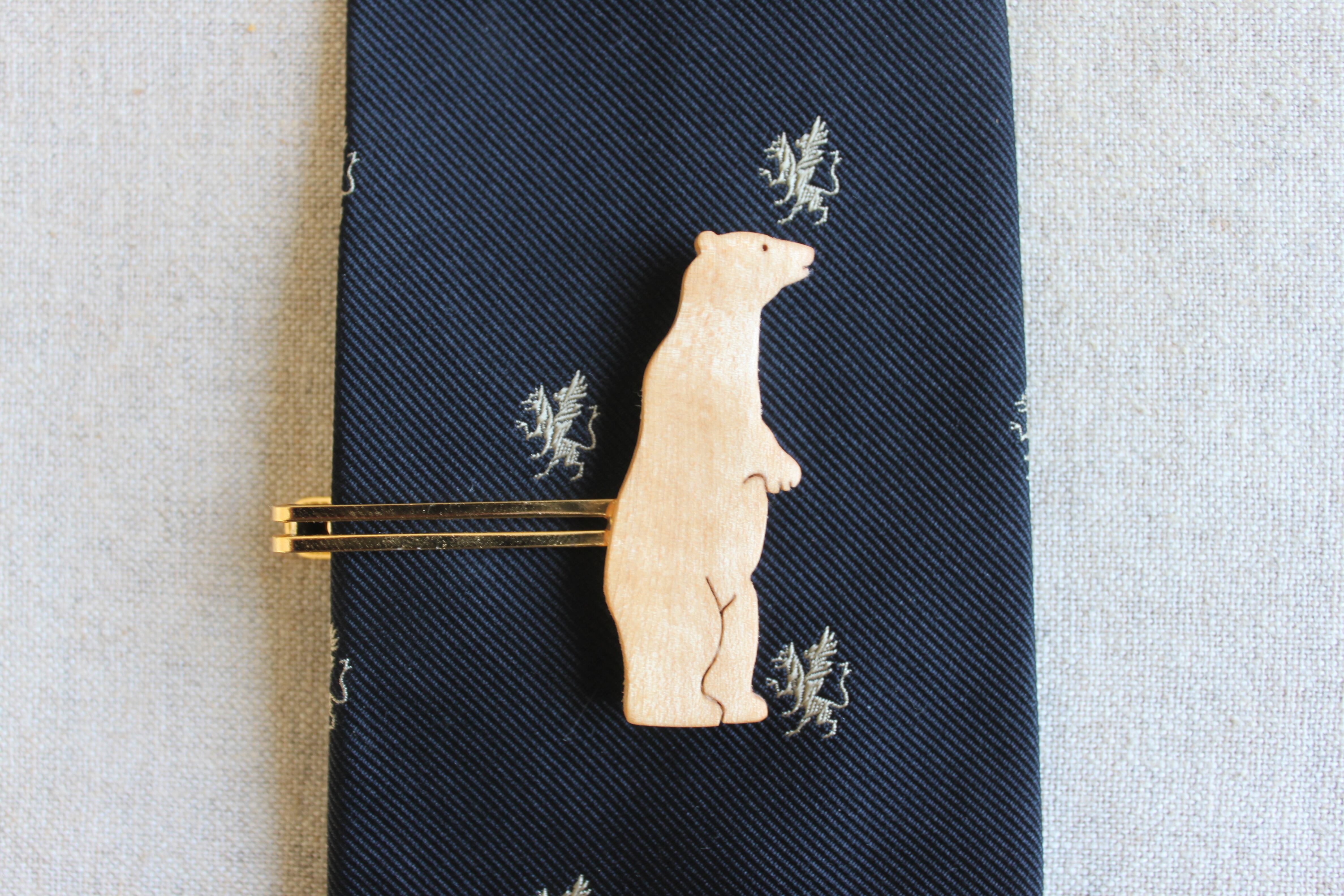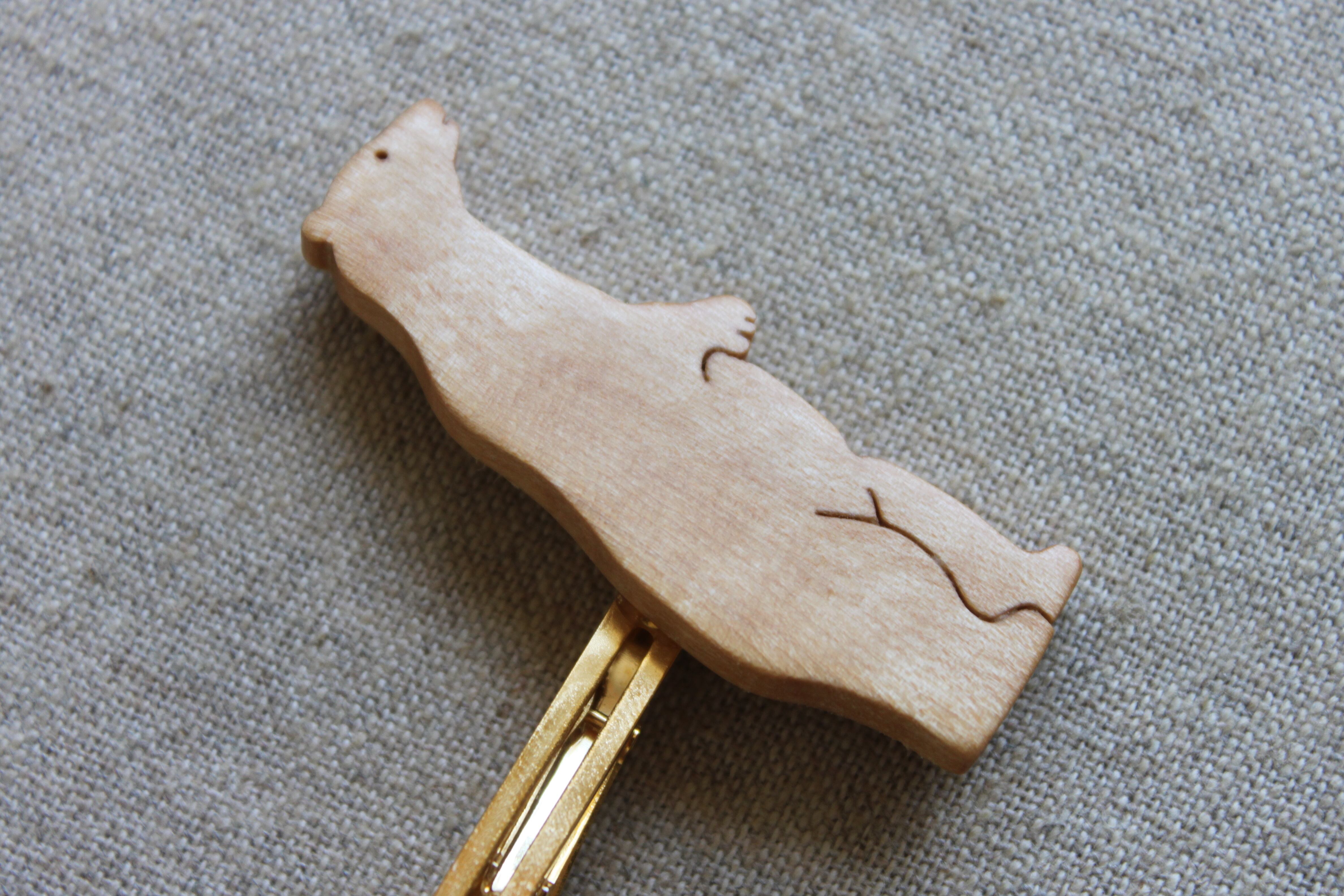 木材の木目、色を生かし丁寧に仕上げ深い光沢を持った他には無い一点物のネクタイピンです。