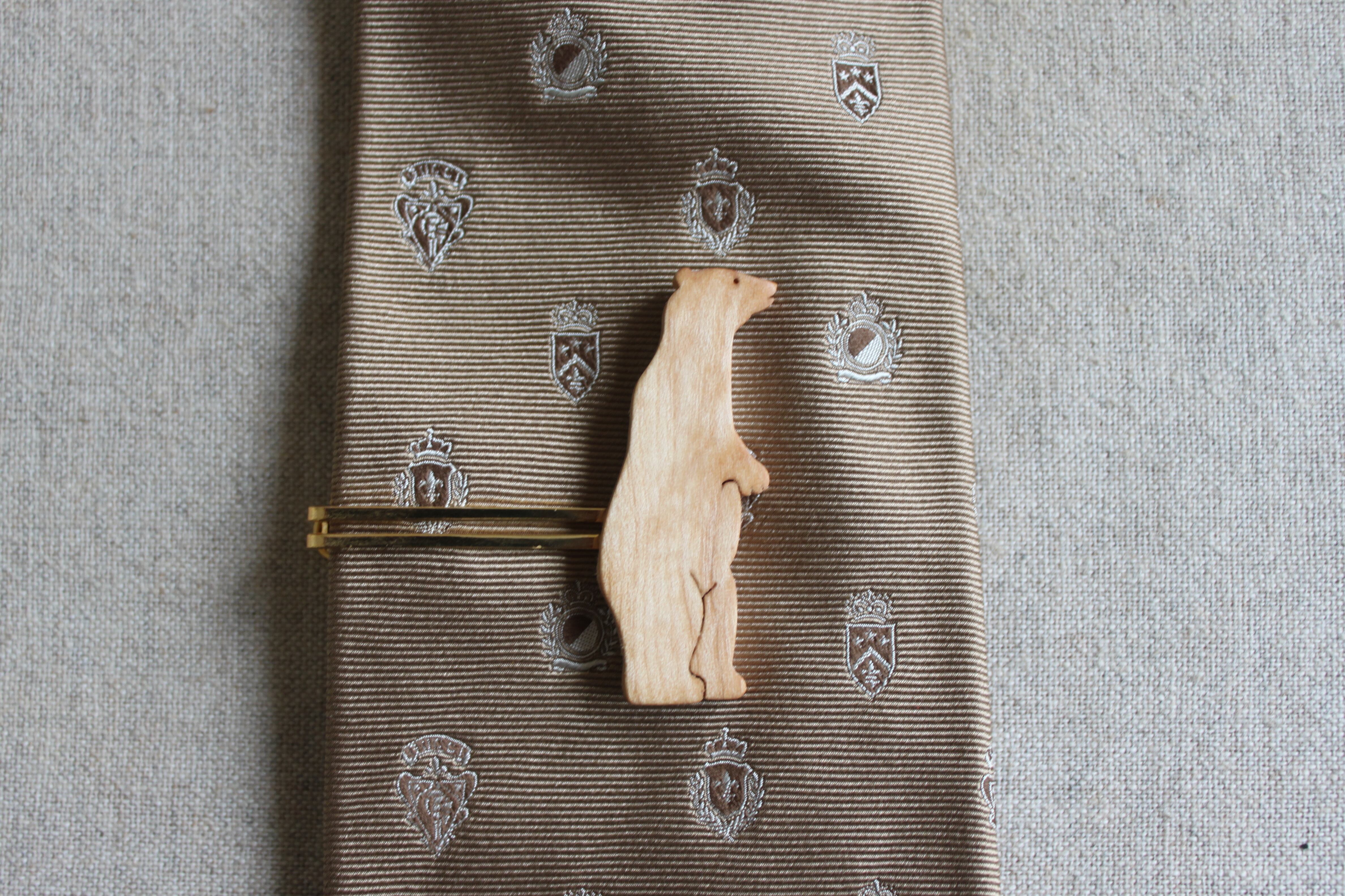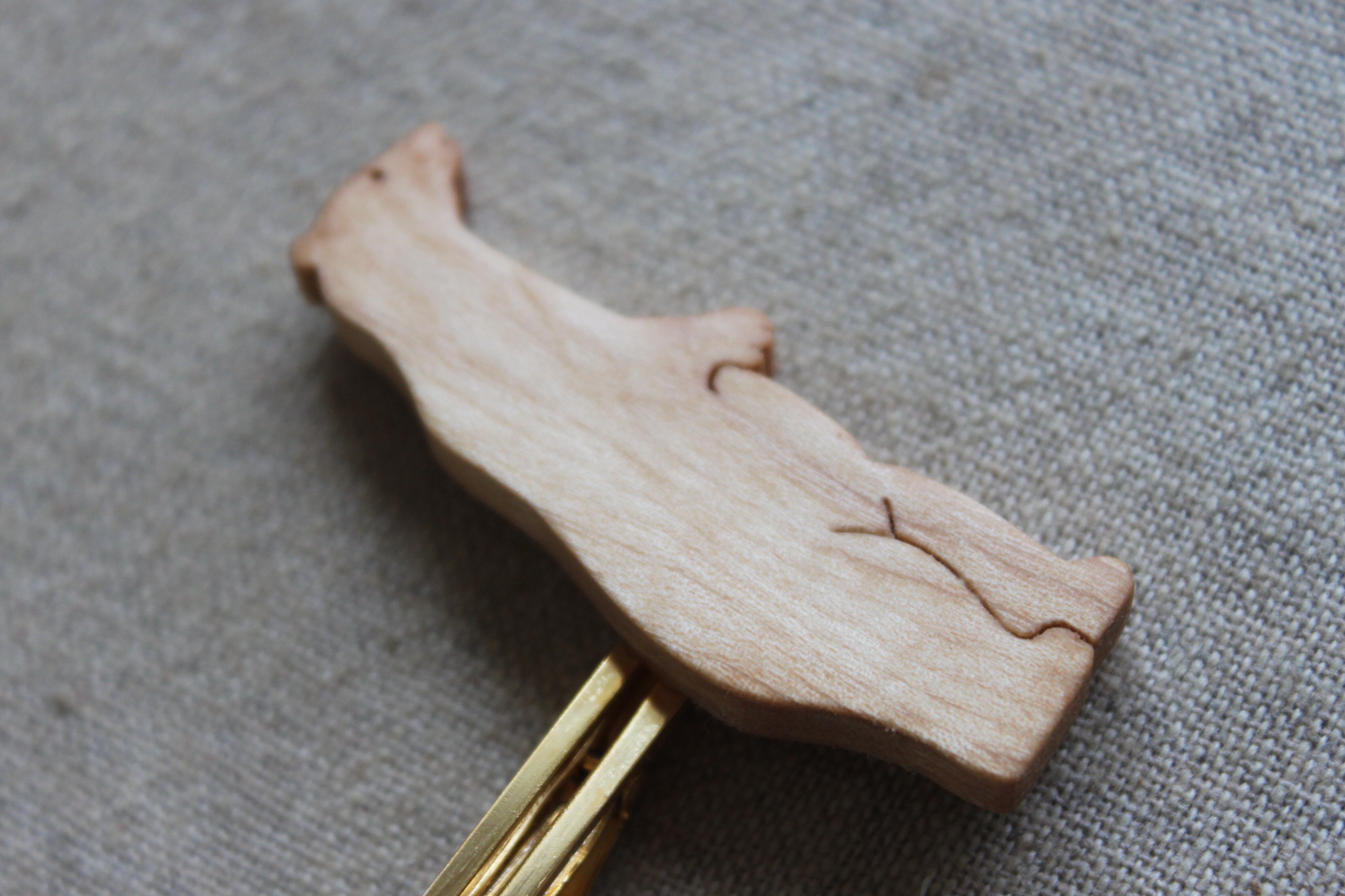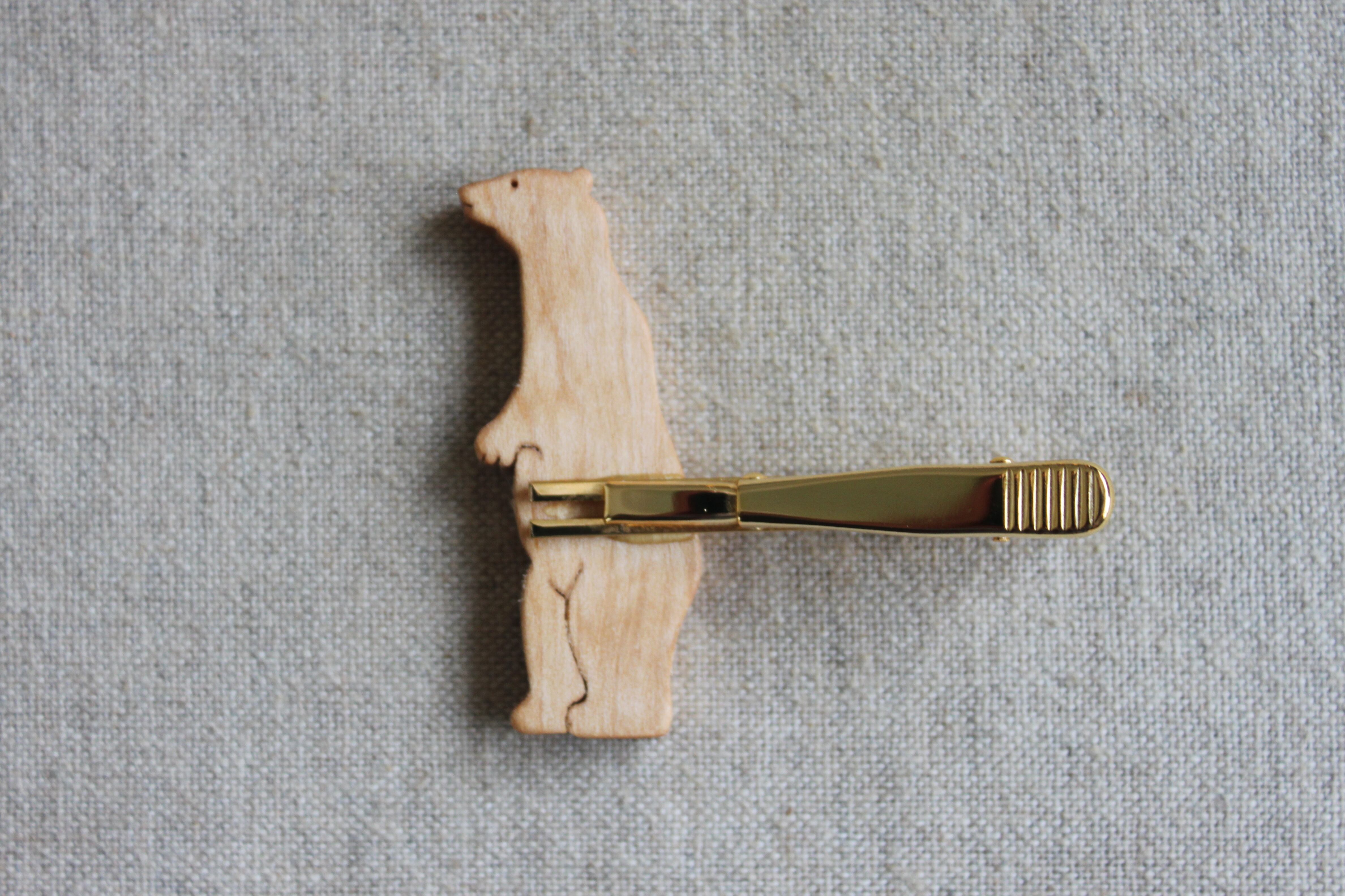 木材の木目、色を生かし丁寧に仕上げ深い光沢を持った他には無い一点物のネクタイピンです。