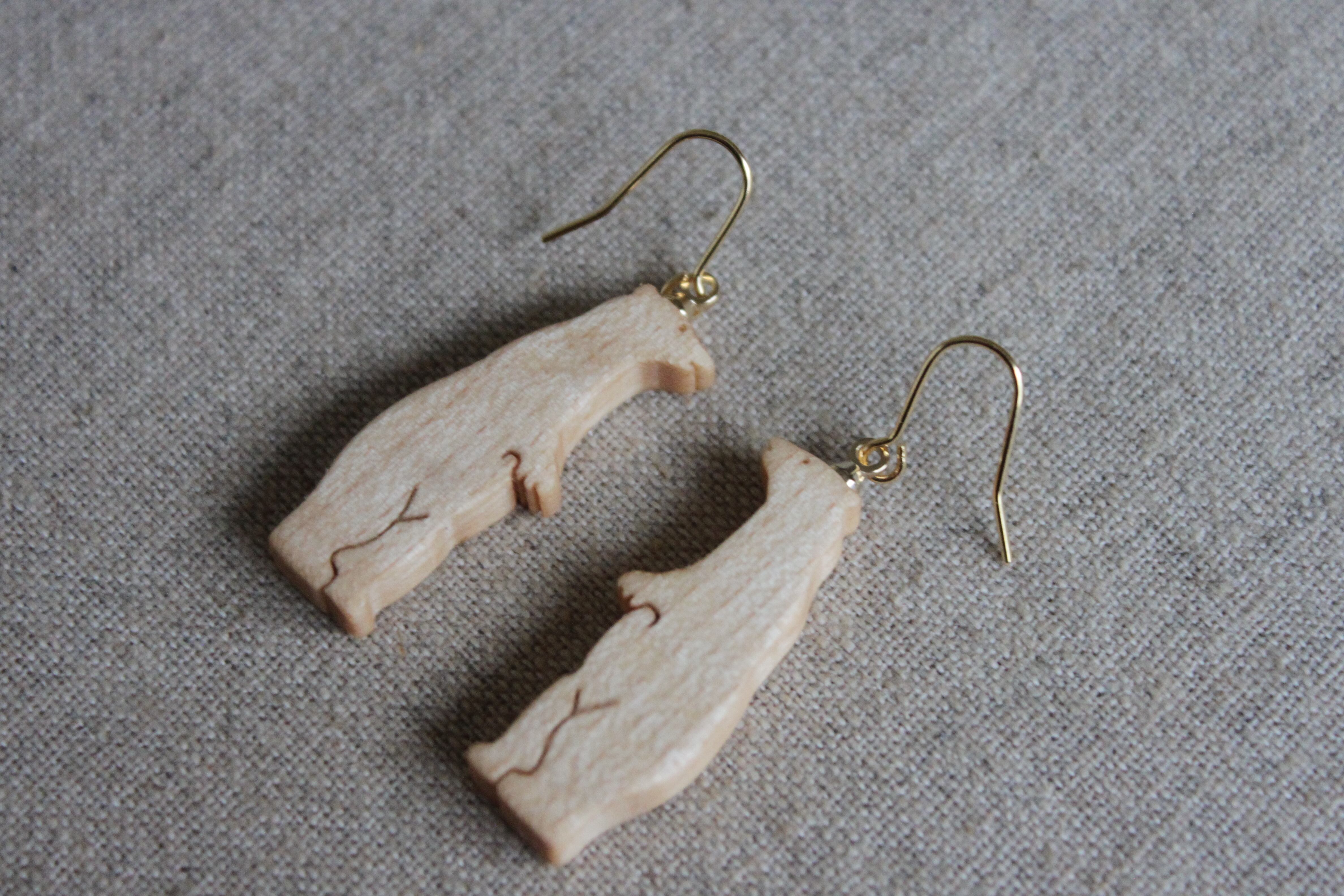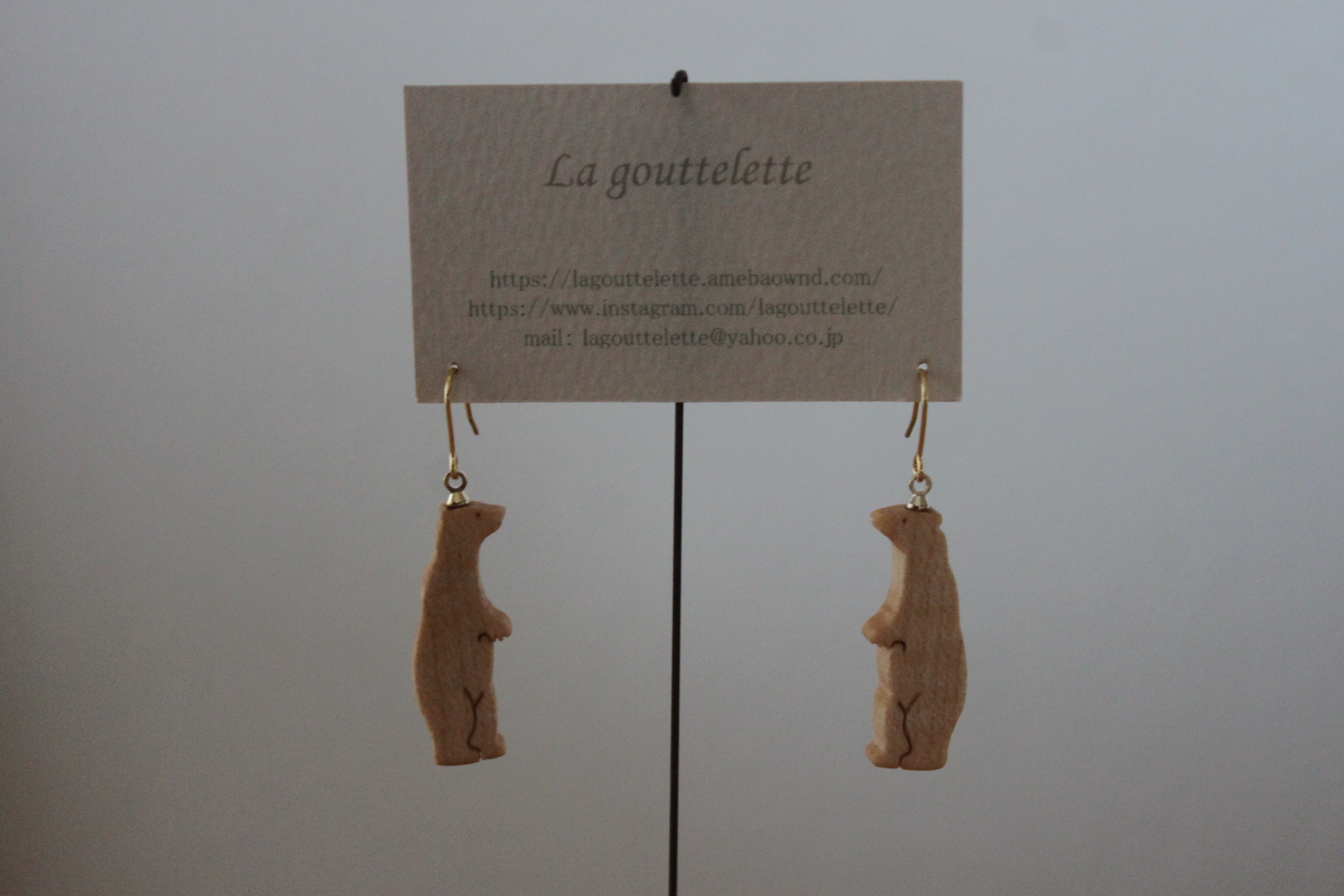 木材の木目、色を生かし丁寧に仕上げた他には無い一点物のピアスです。