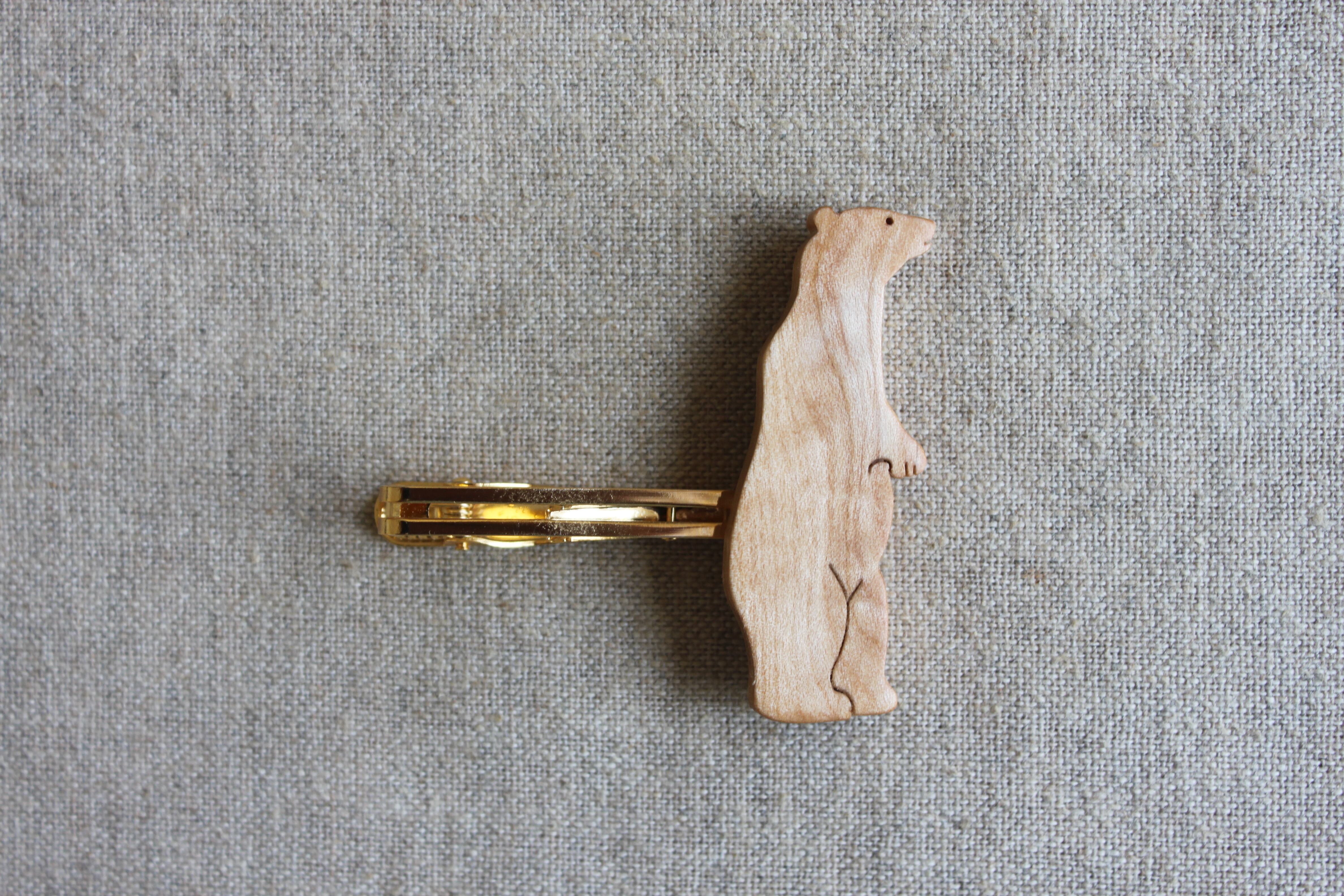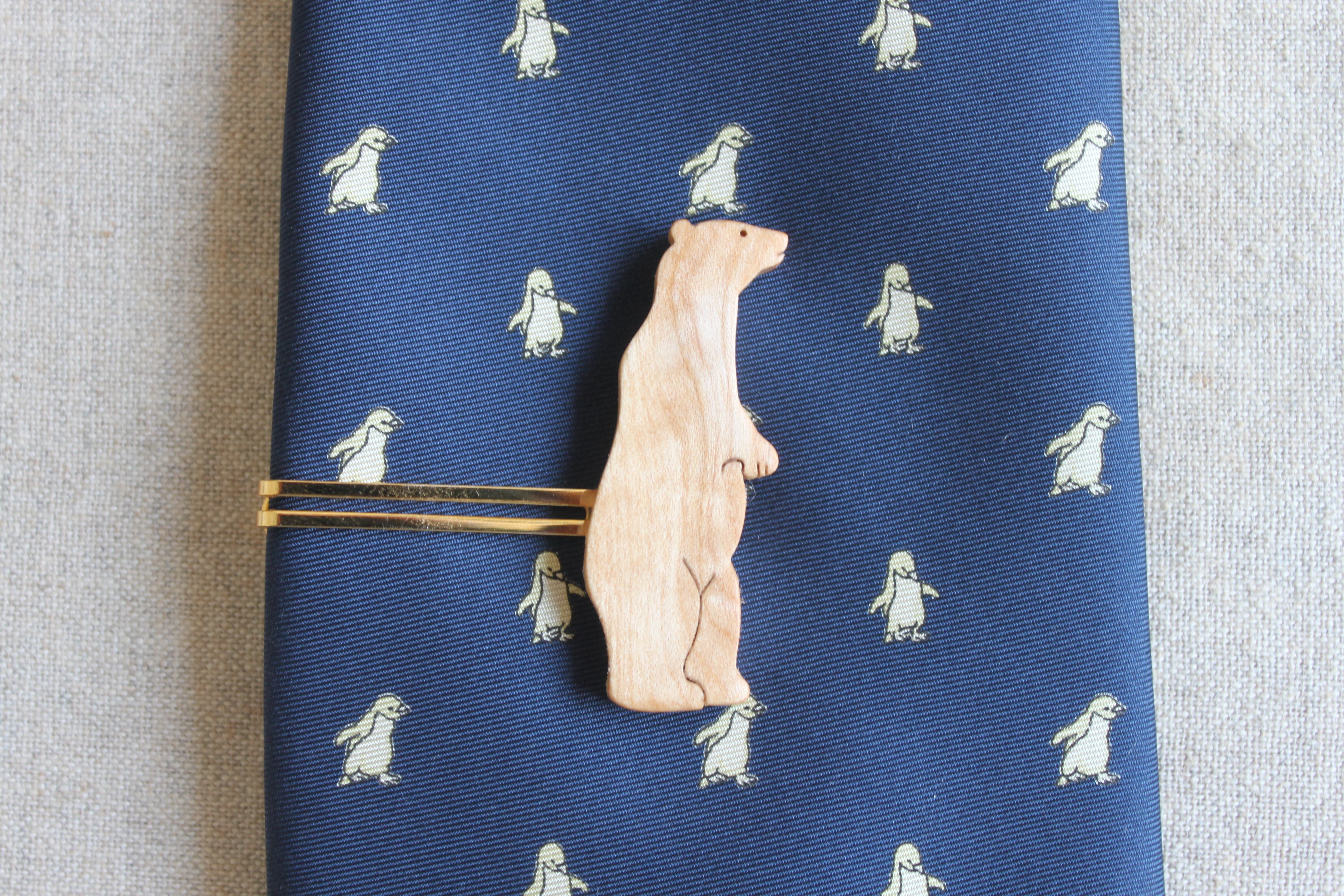 木製シロクマネクタイピン