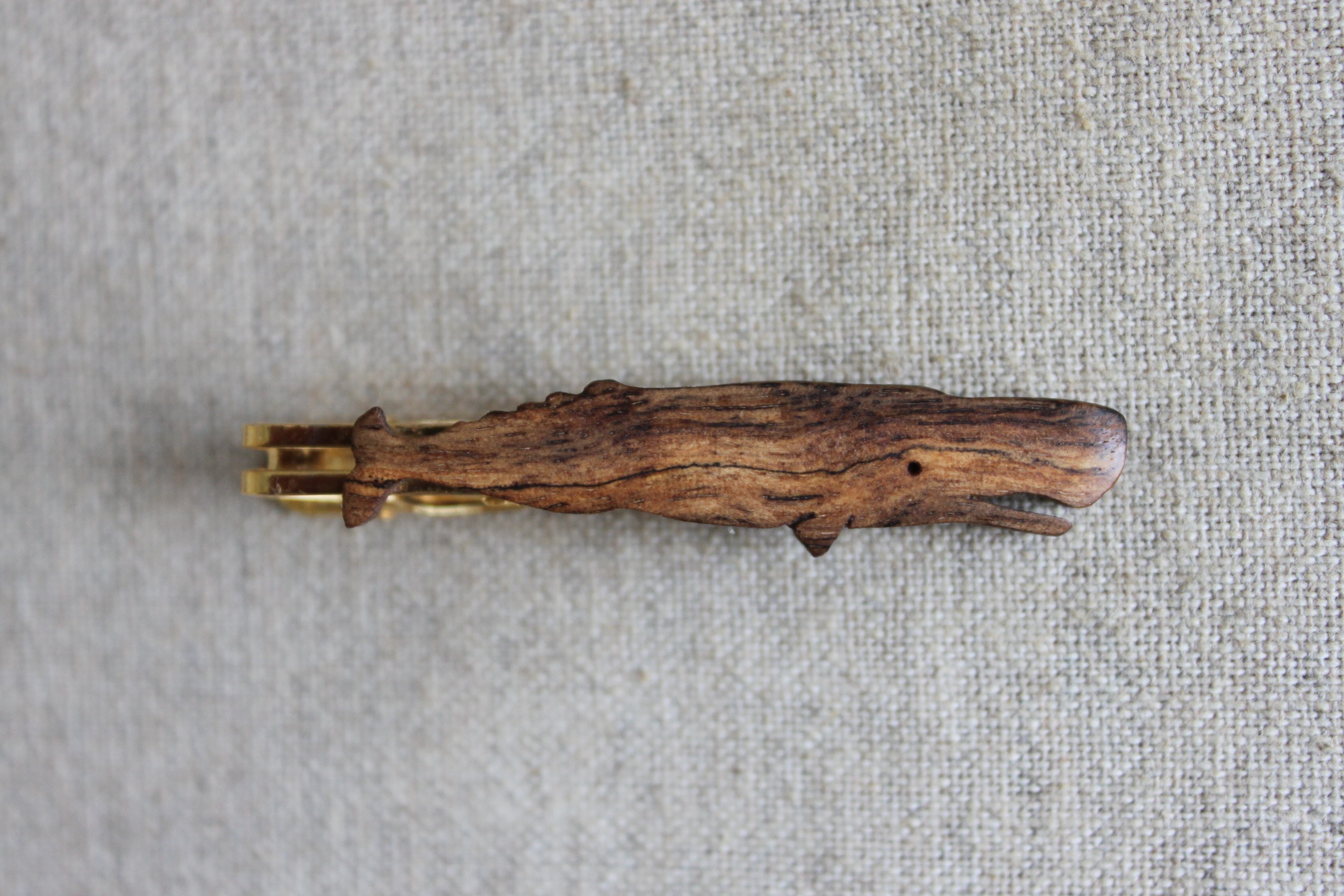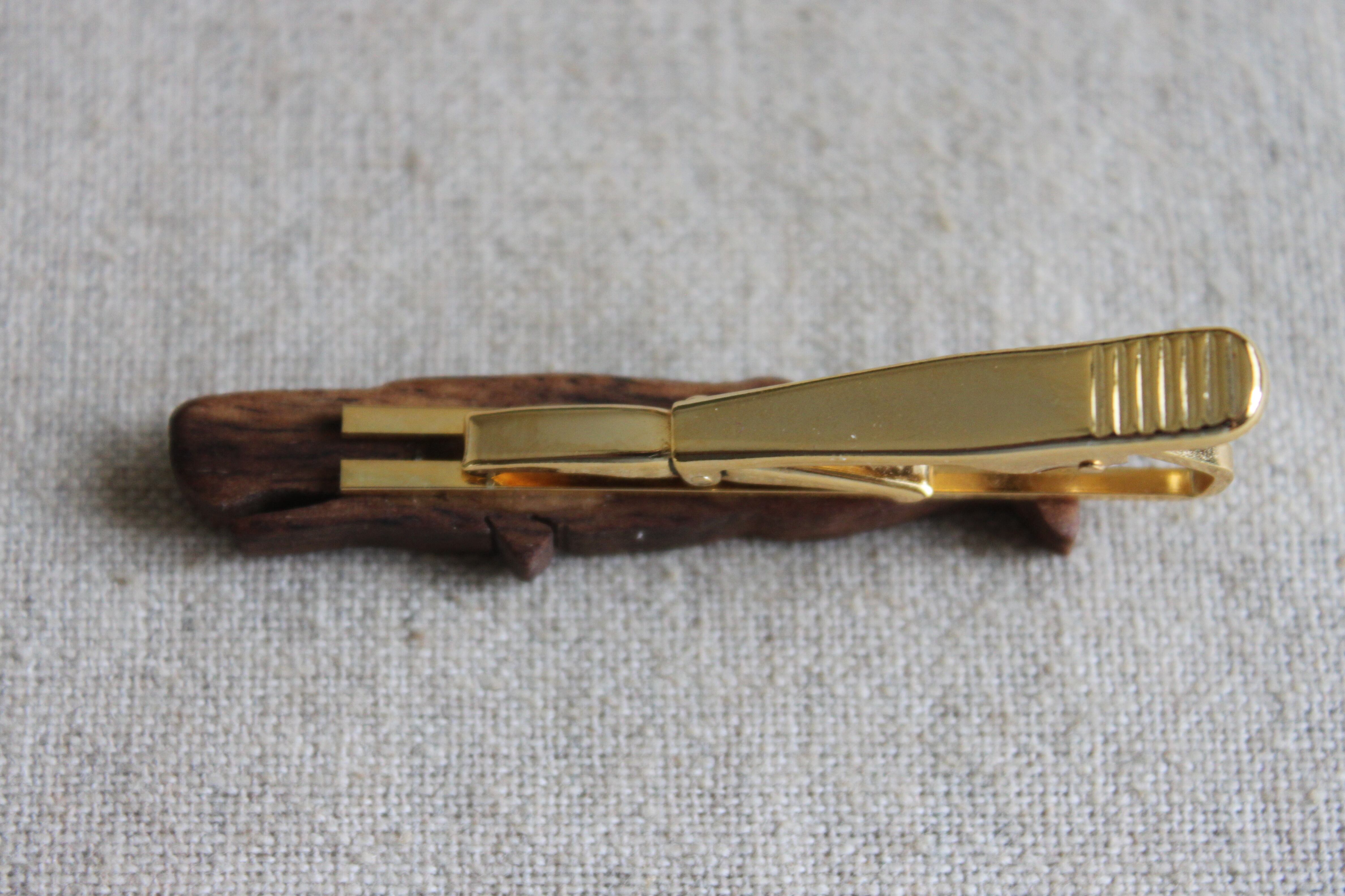 木材の木目、色を生かし丁寧に仕上げ深い光沢を持った他には無い一点物のネクタイピンです。