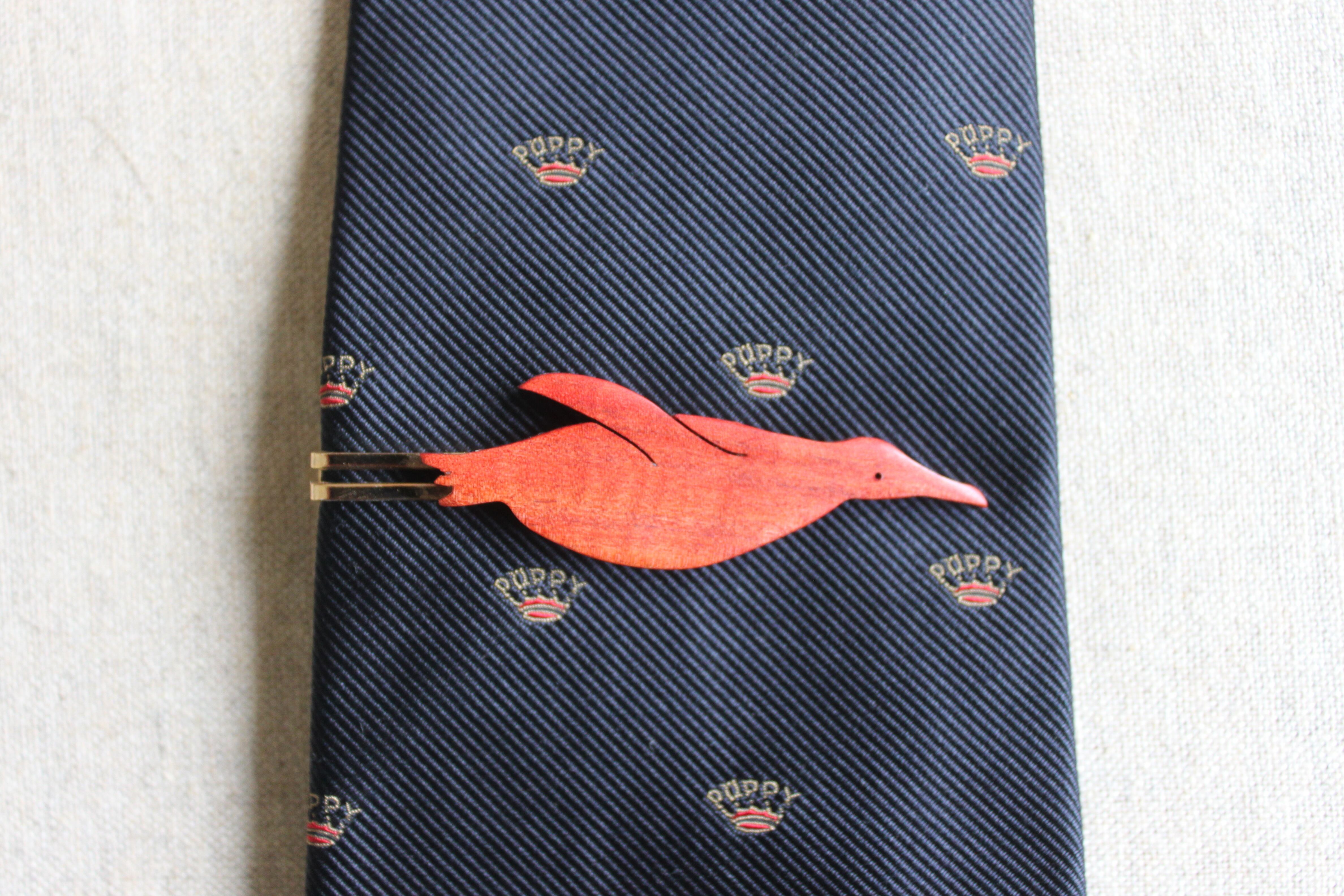 木材の木目、色を生かし丁寧に仕上げ深い光沢を持った他には無い一点物のネクタイピンです。