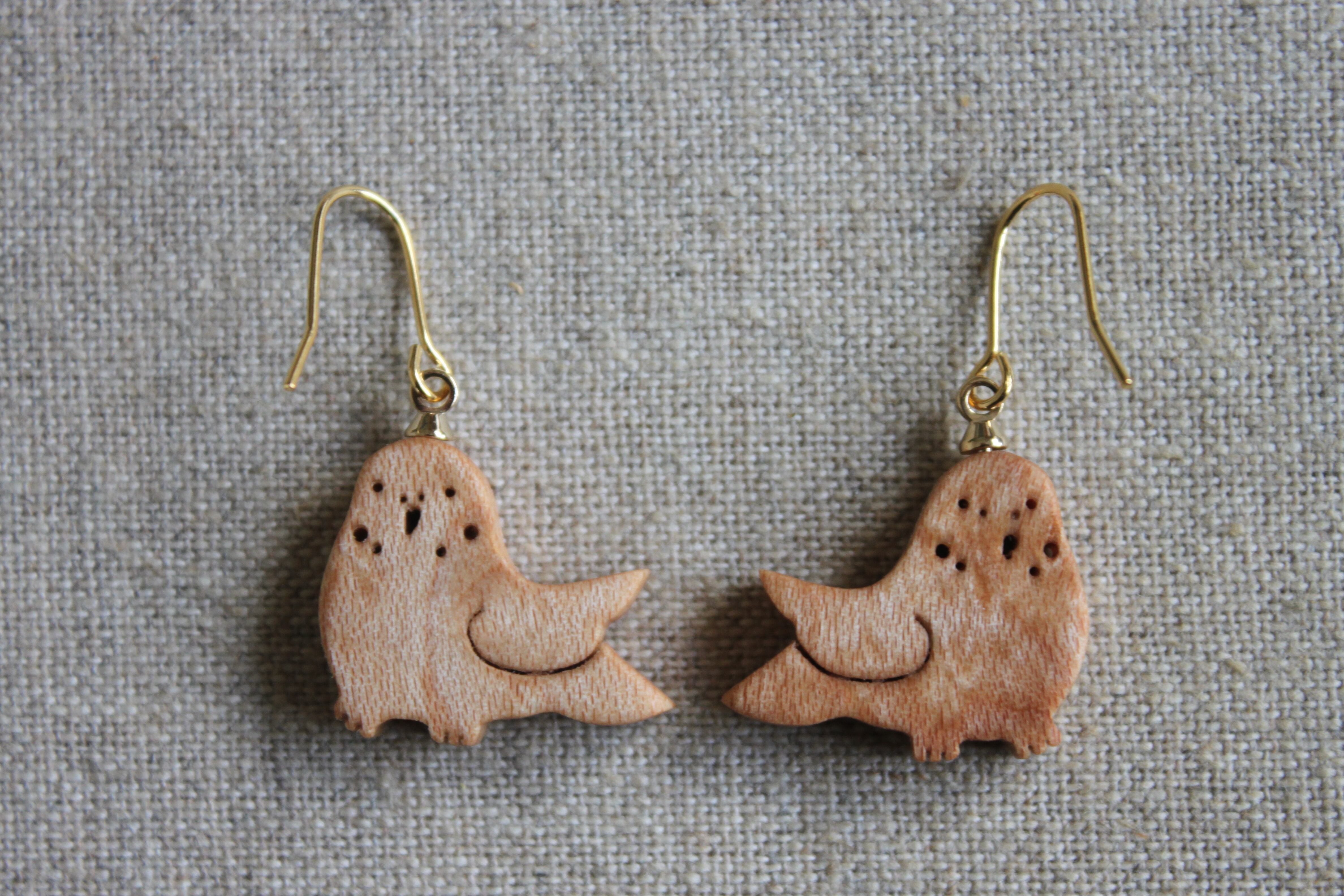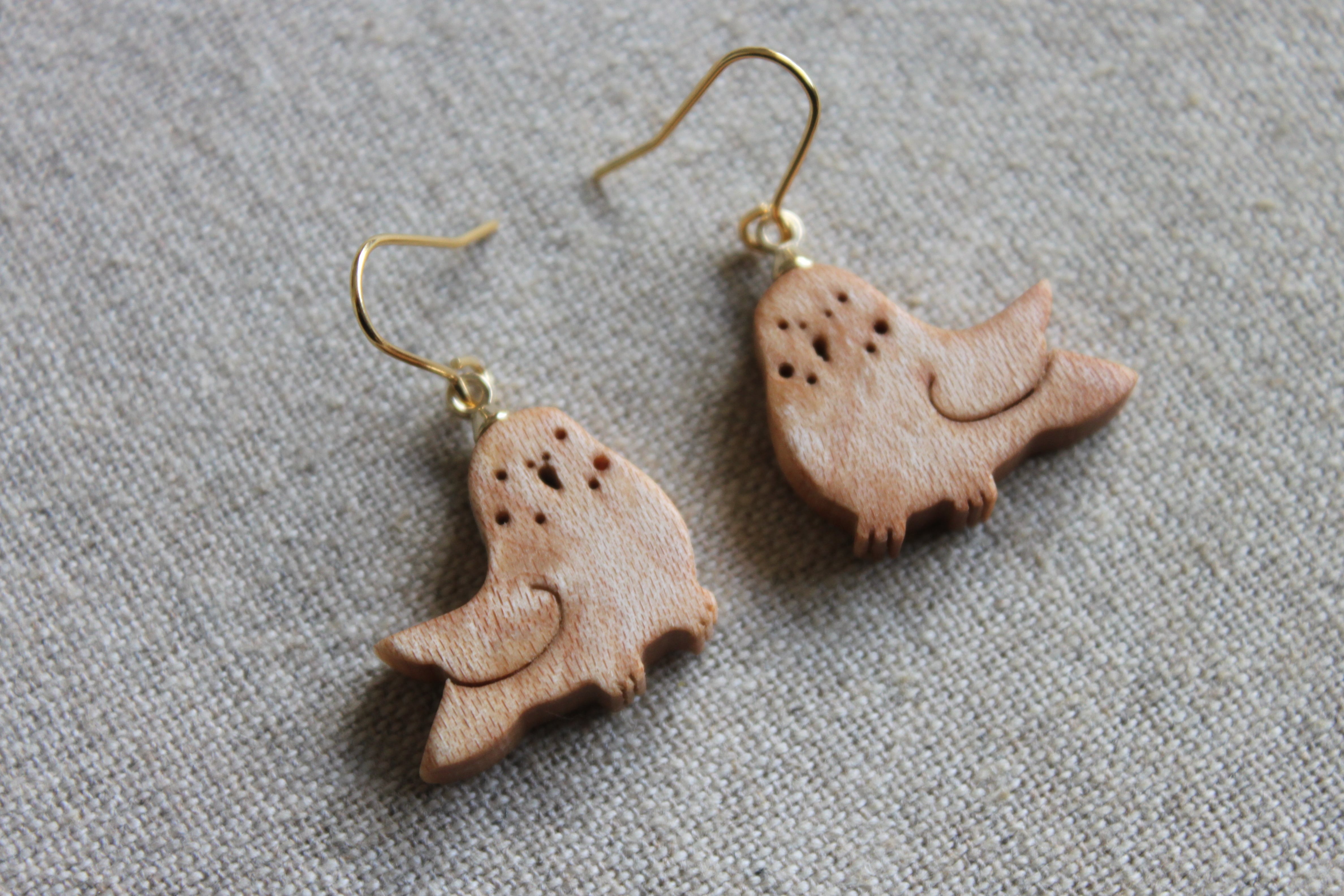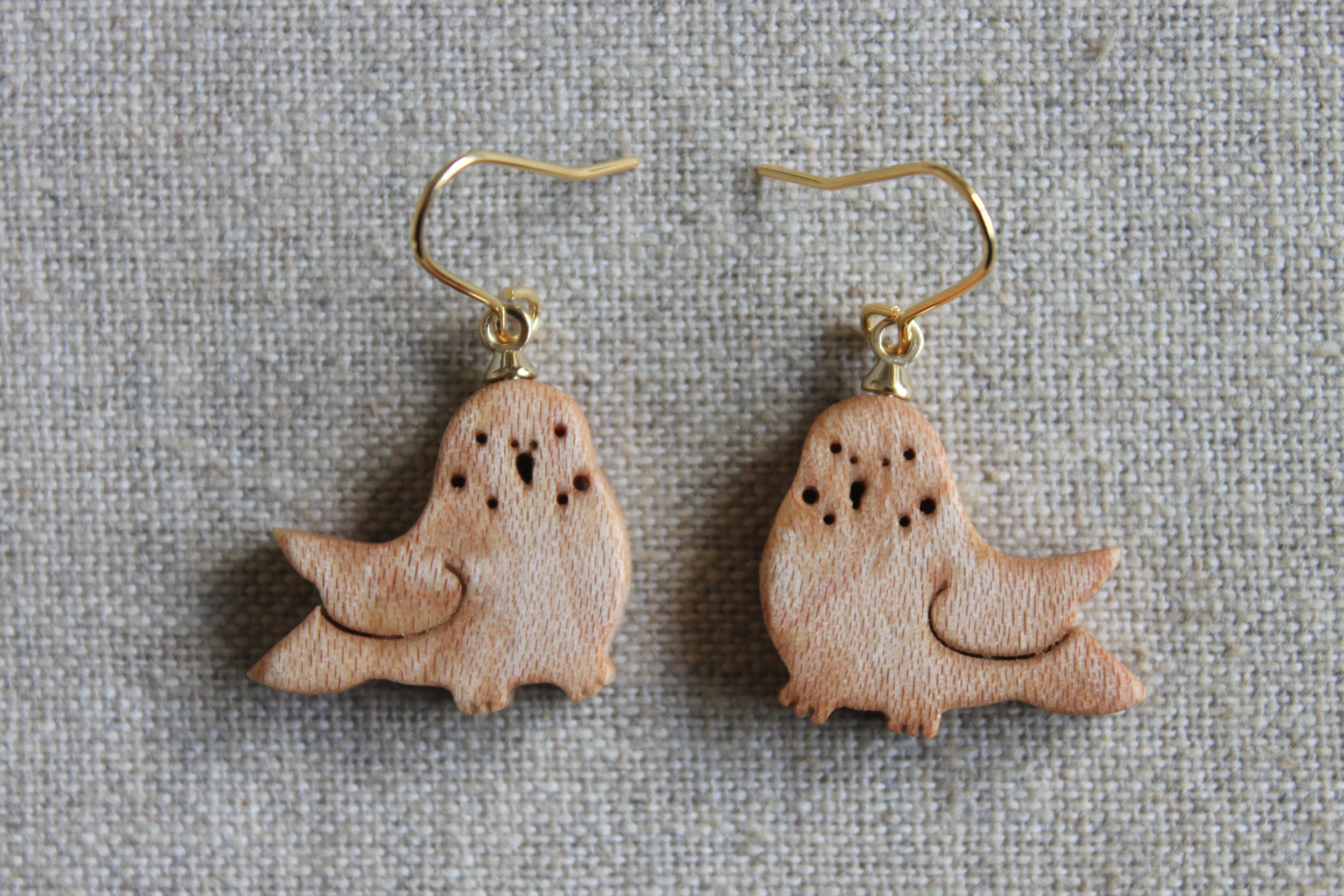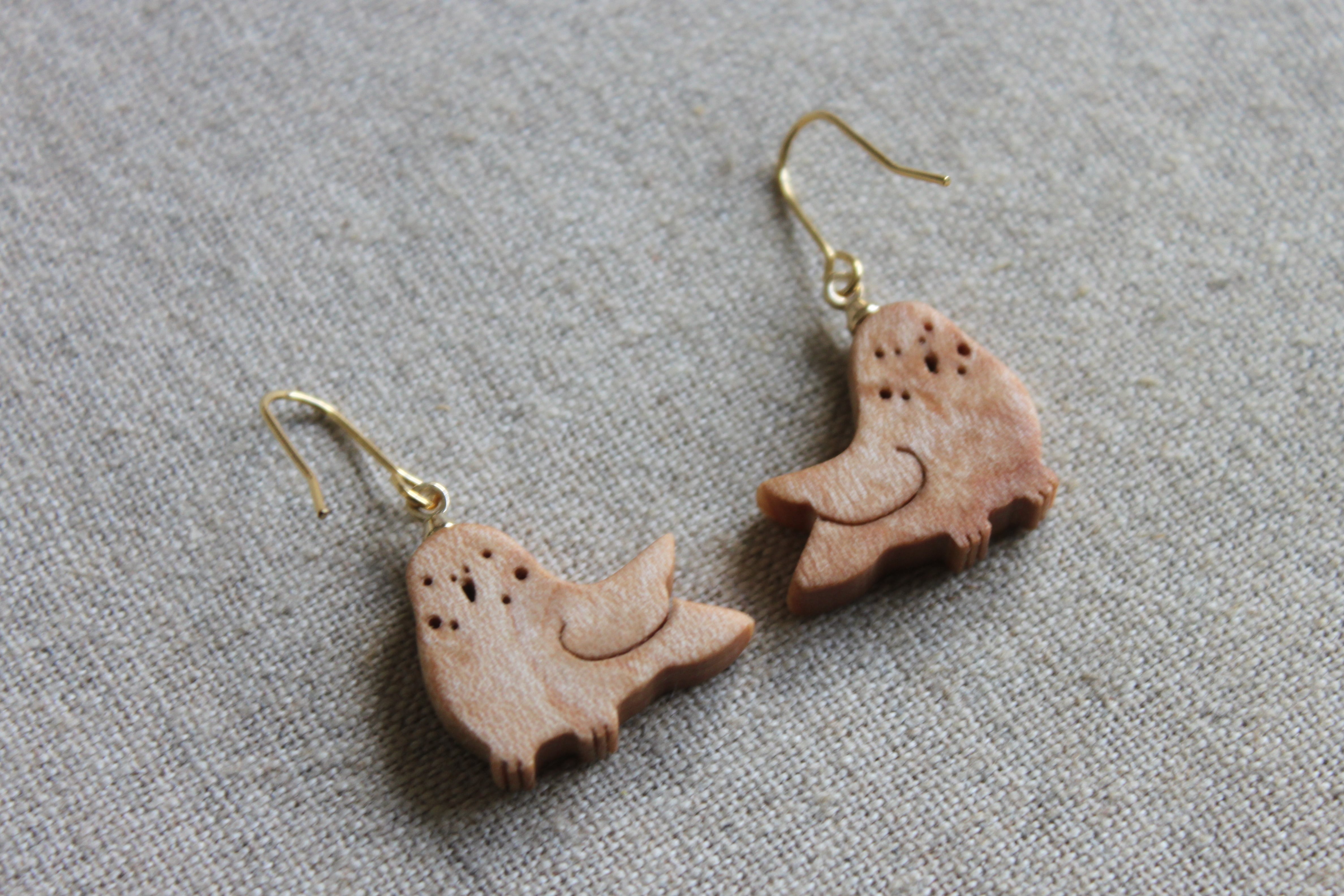 木材の木目、色を生かし丁寧に仕上げた他には無い一点物のピアスです。