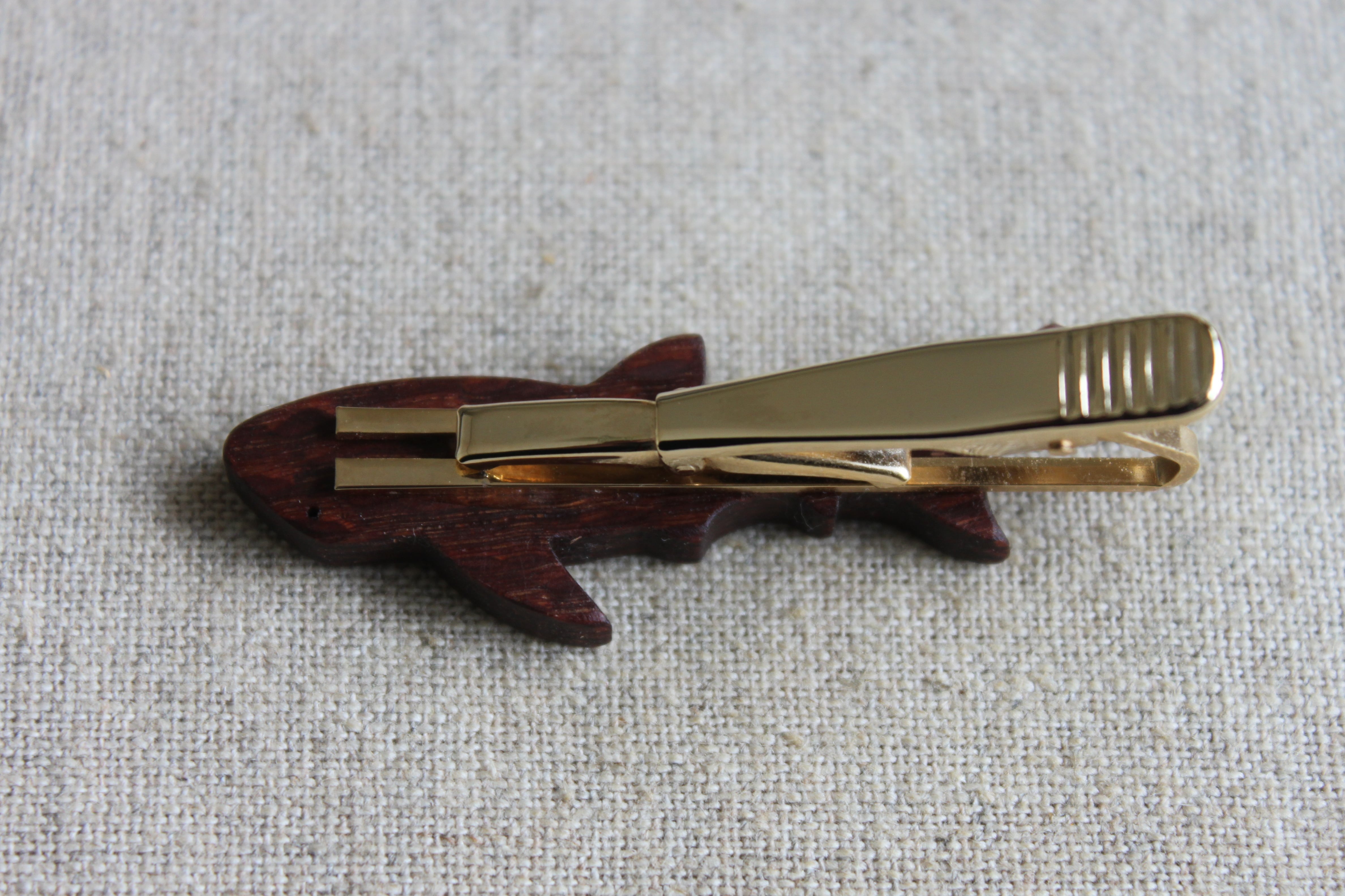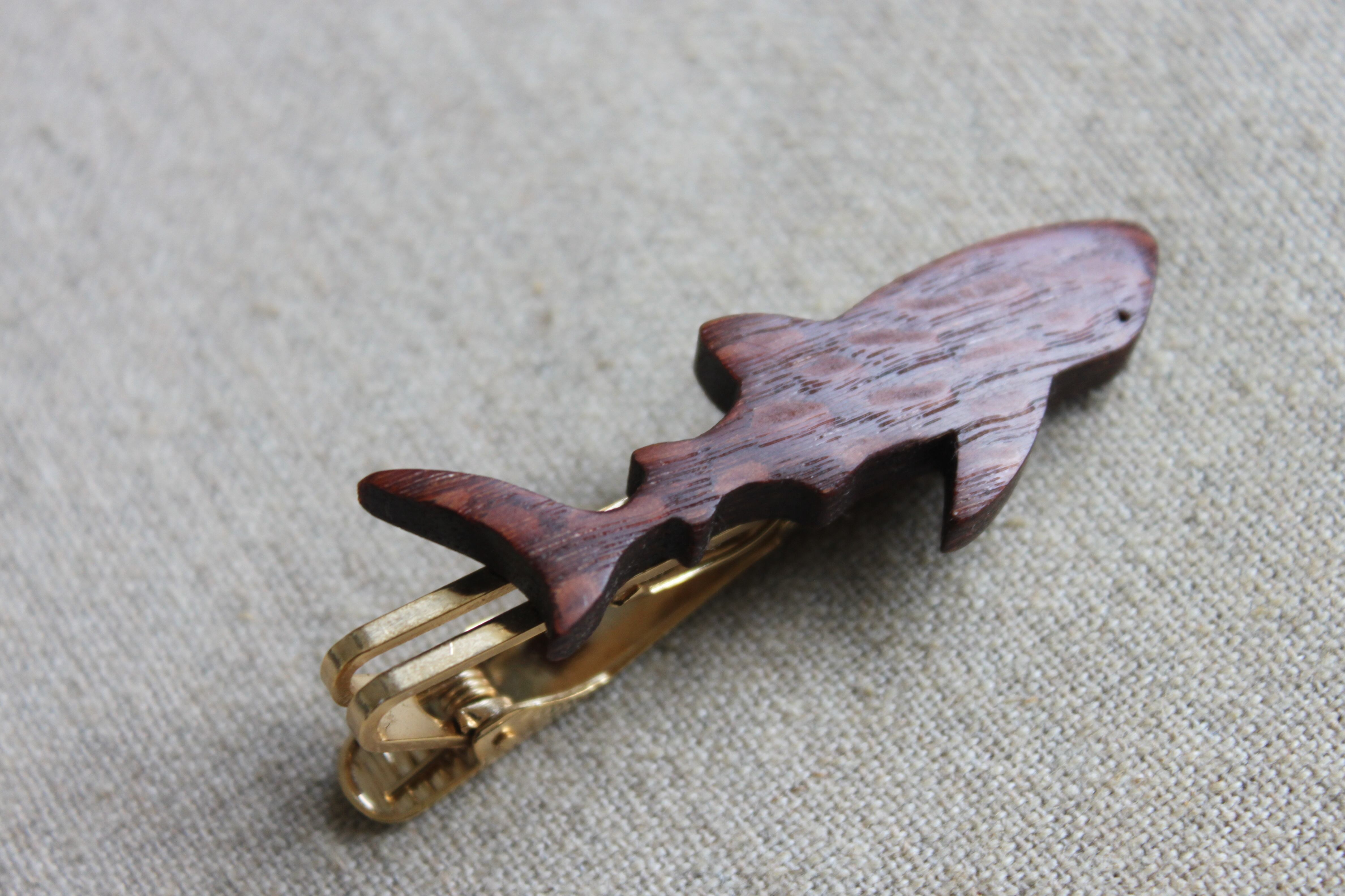 木材の木目、色を生かし丁寧に仕上げ深い光沢を持った他には無い一点物のネクタイピンです。