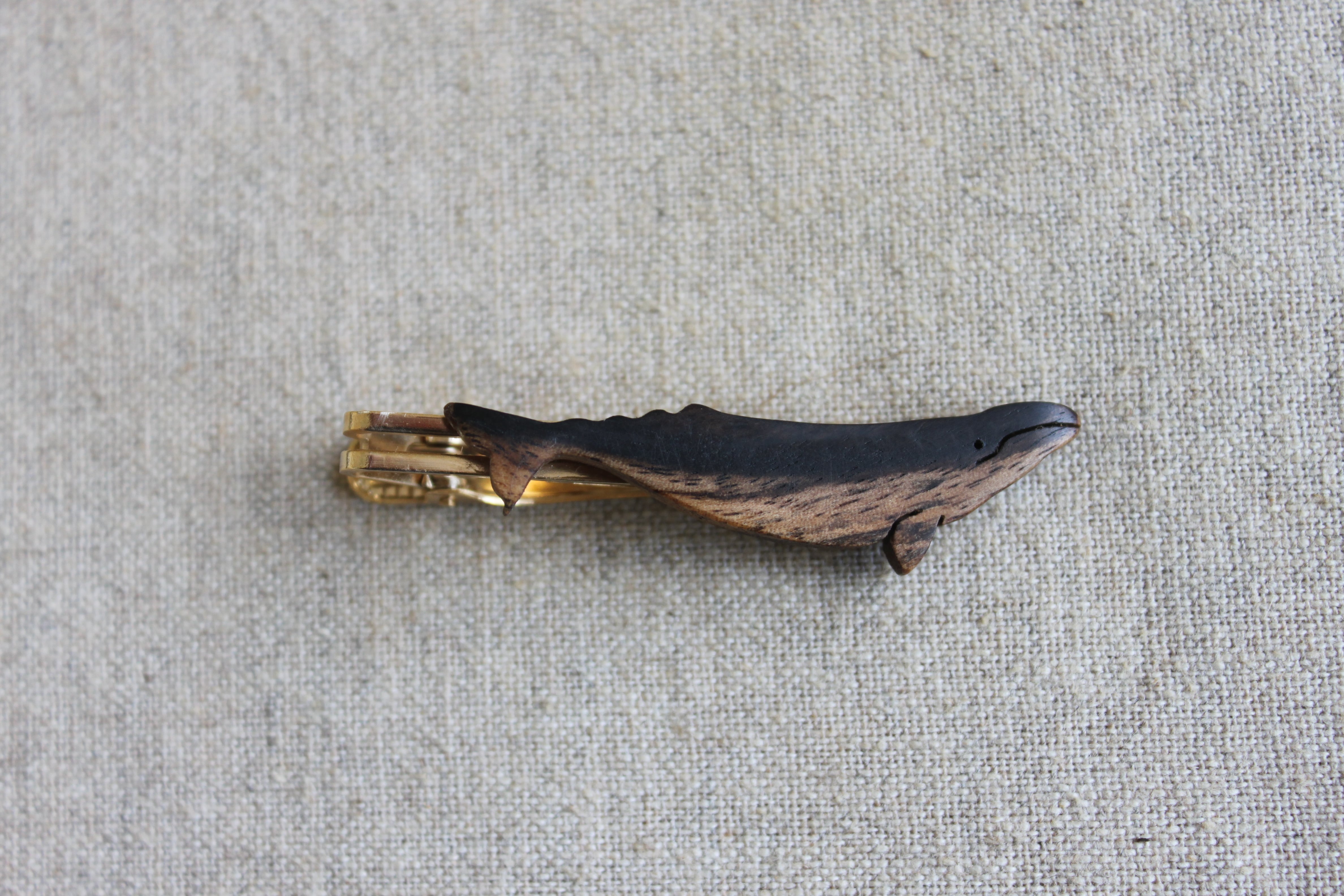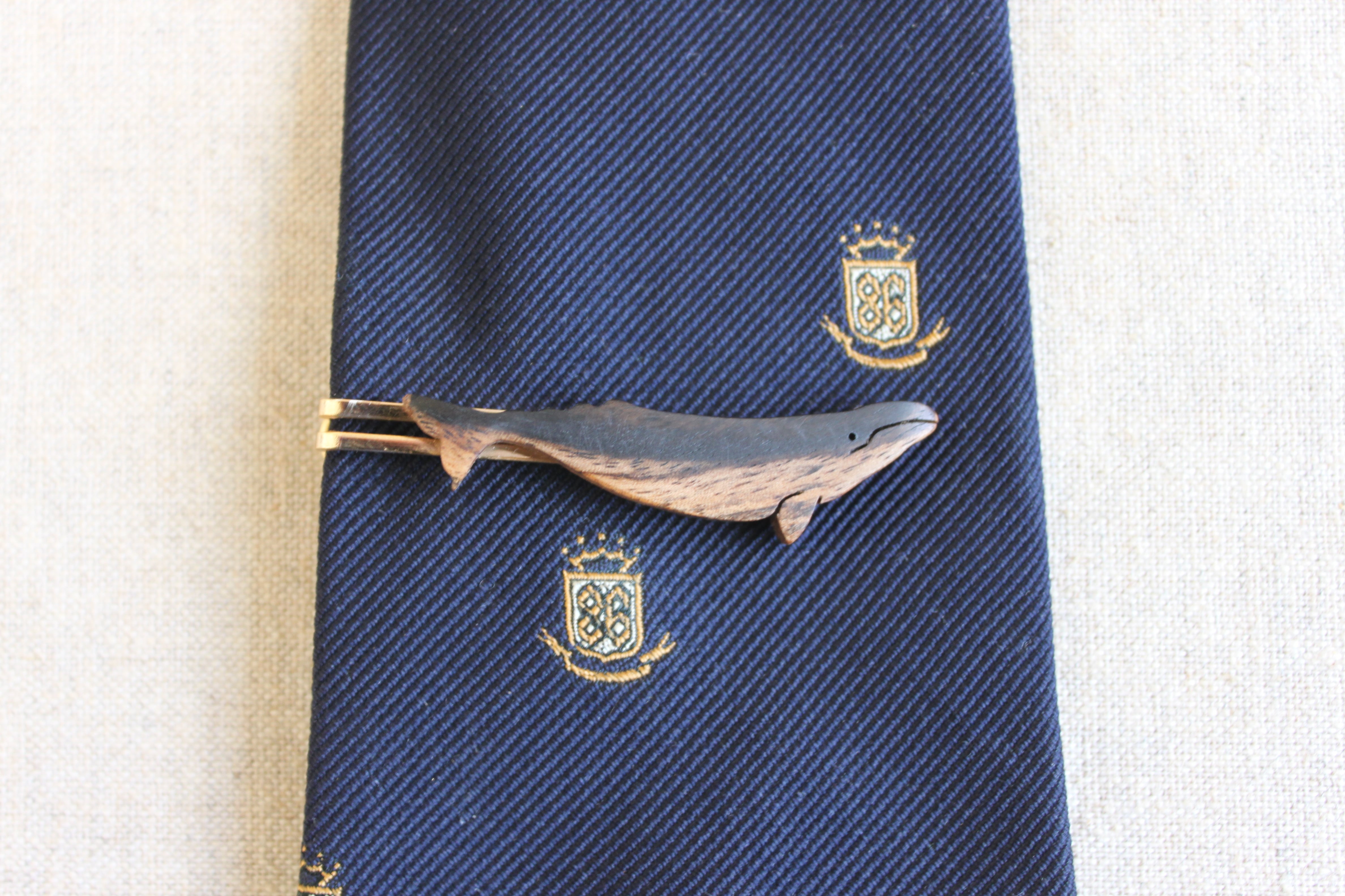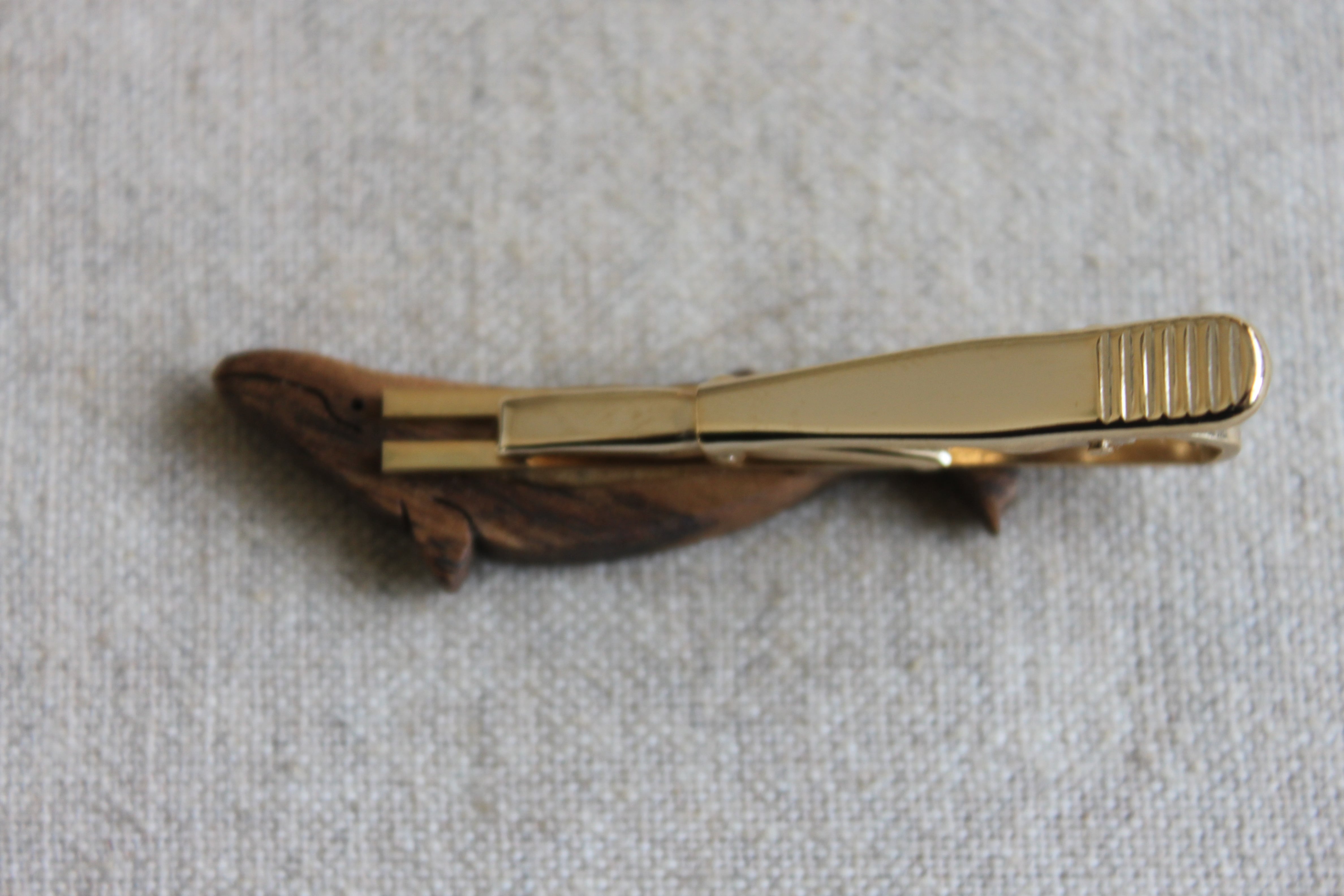 木材の木目、色を生かし丁寧に仕上げ深い光沢を持った他には無い一点物のネクタイピンです。