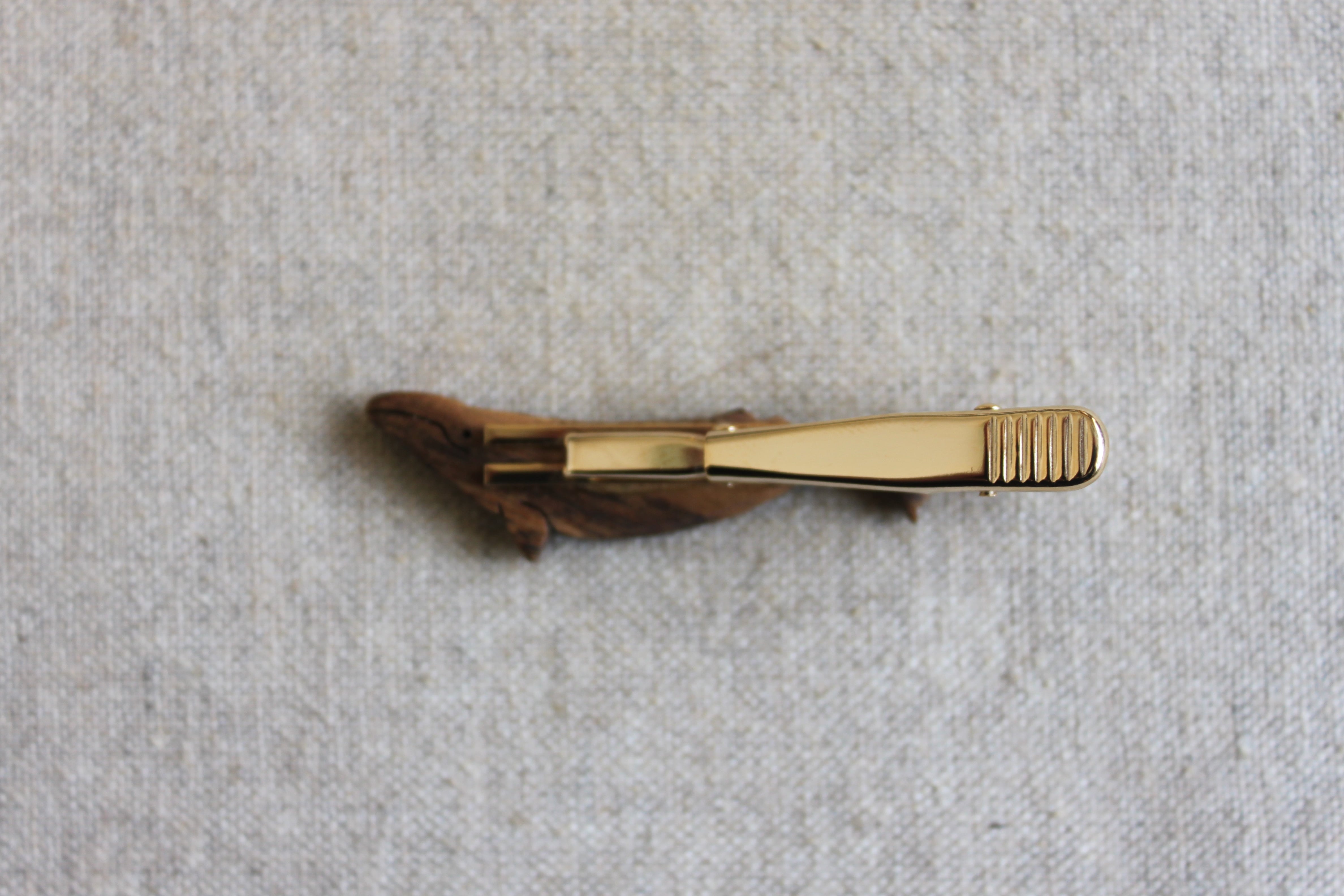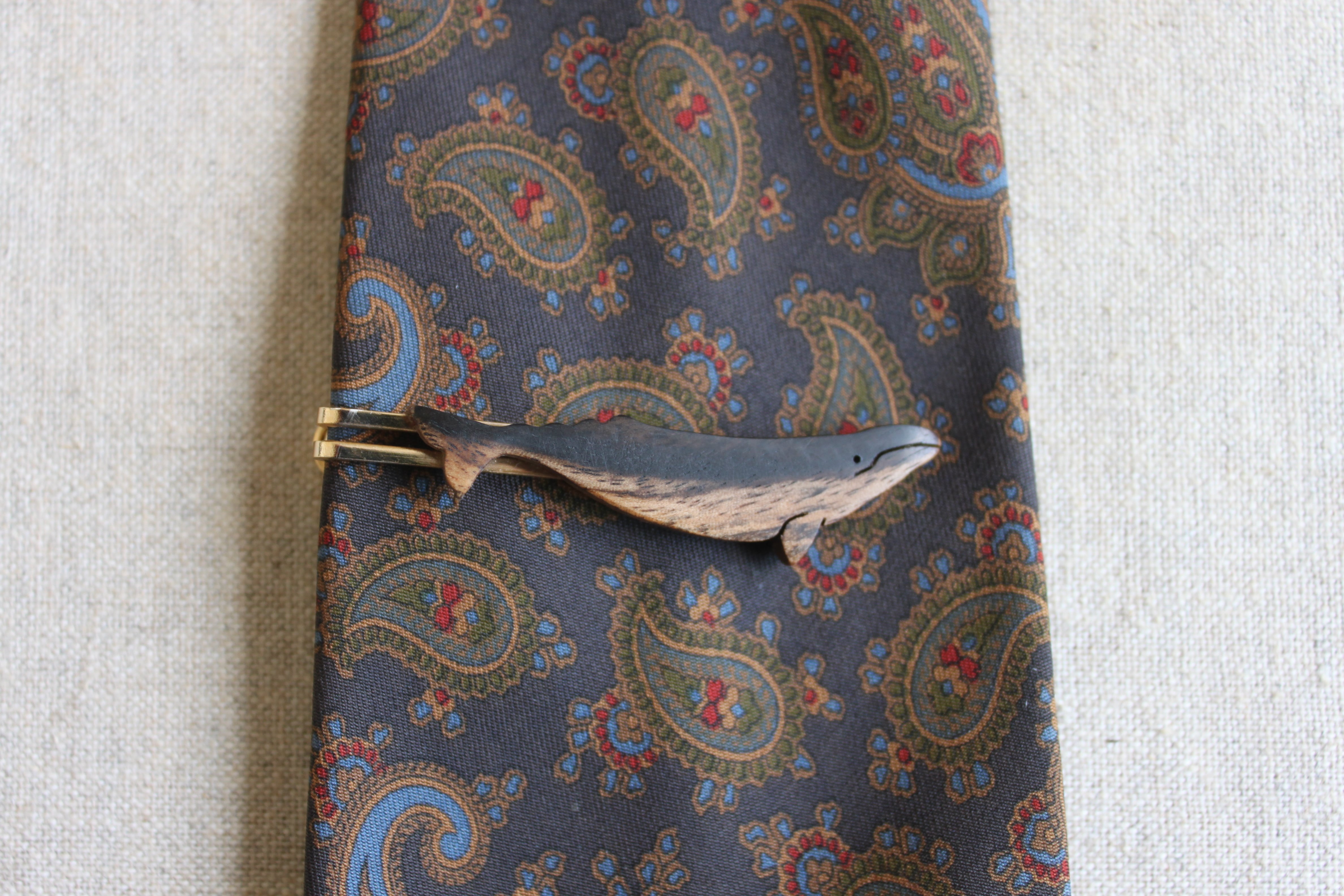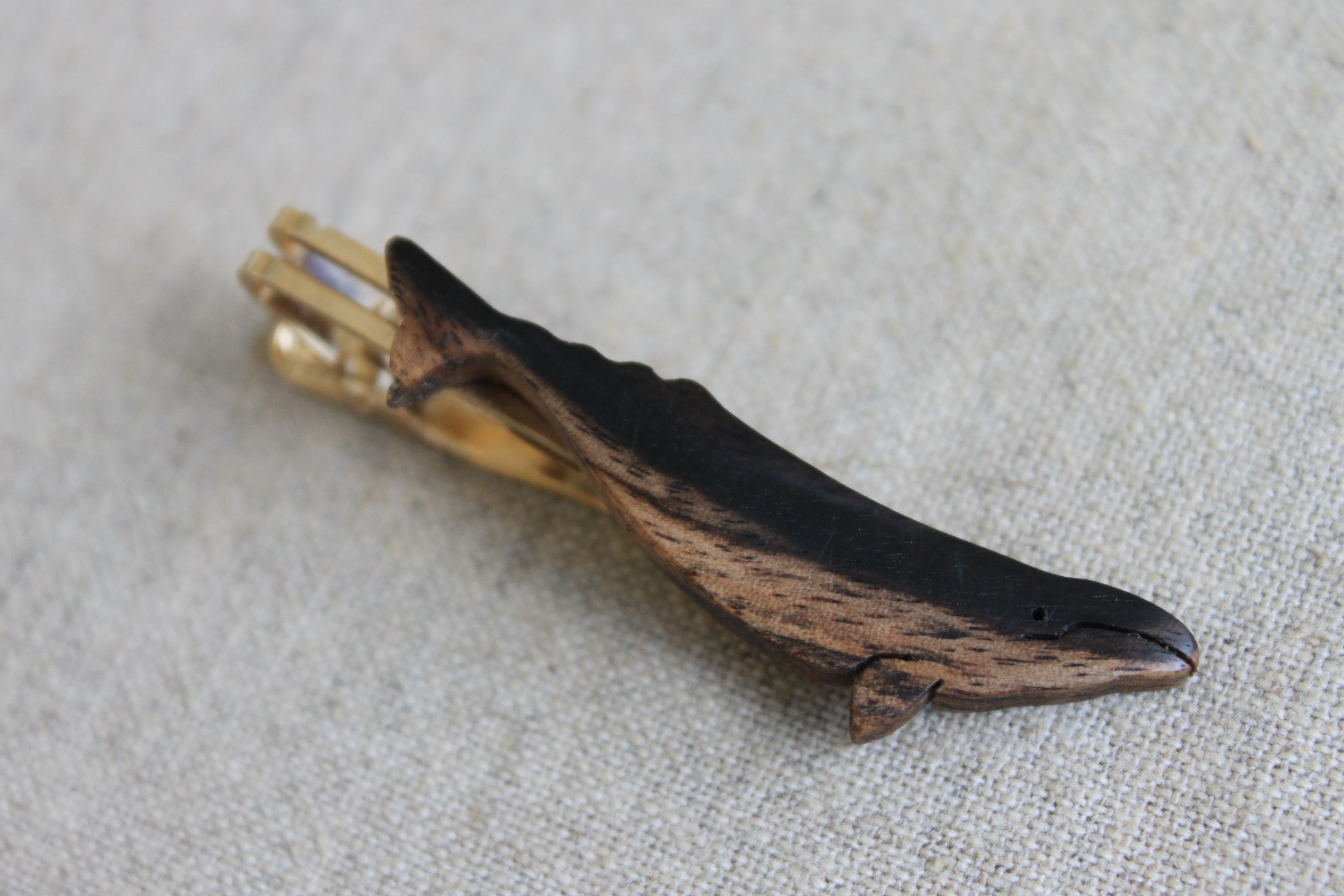 木材の木目、色を生かし丁寧に仕上げ深い光沢を持った他には無い一点物のネクタイピンです。