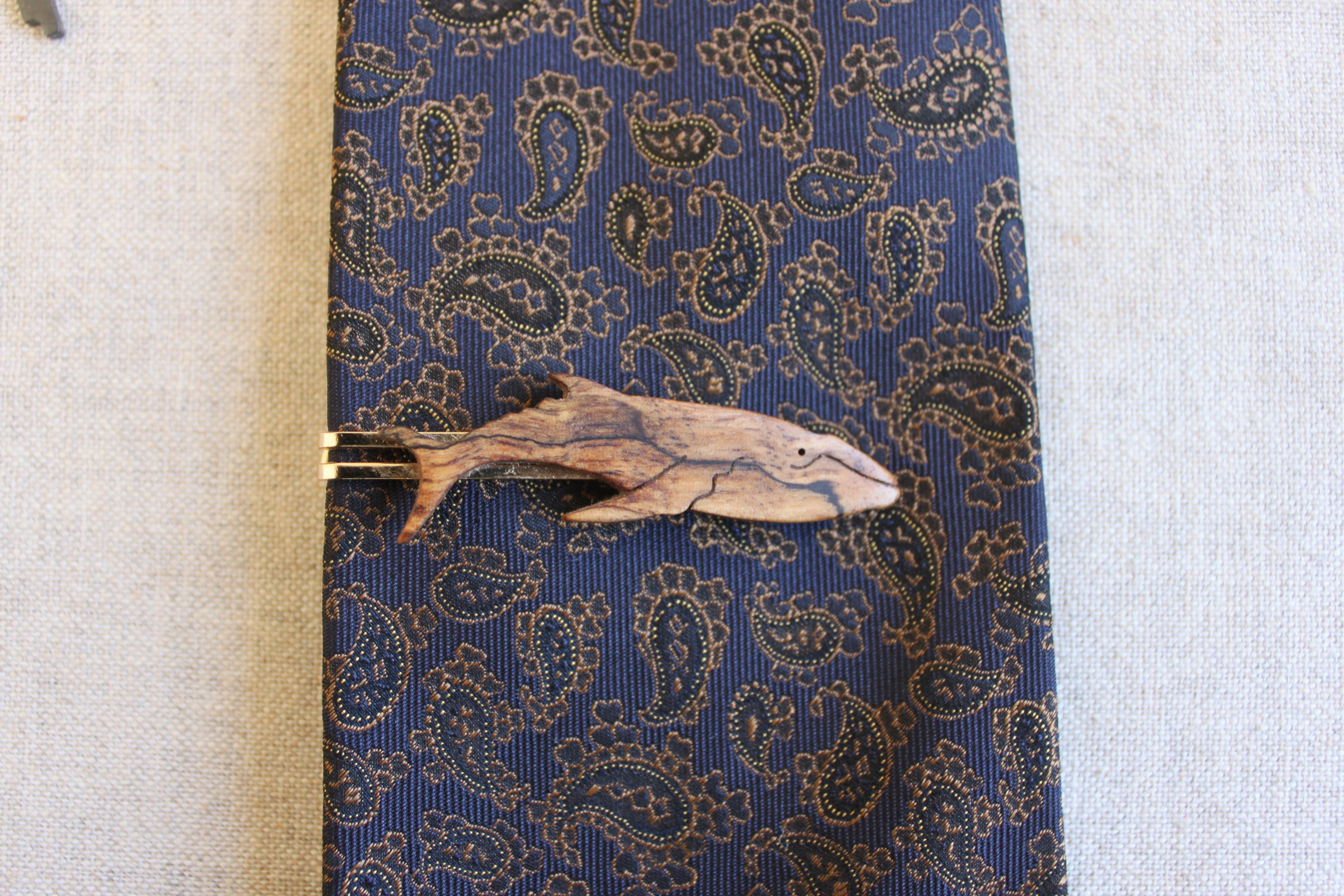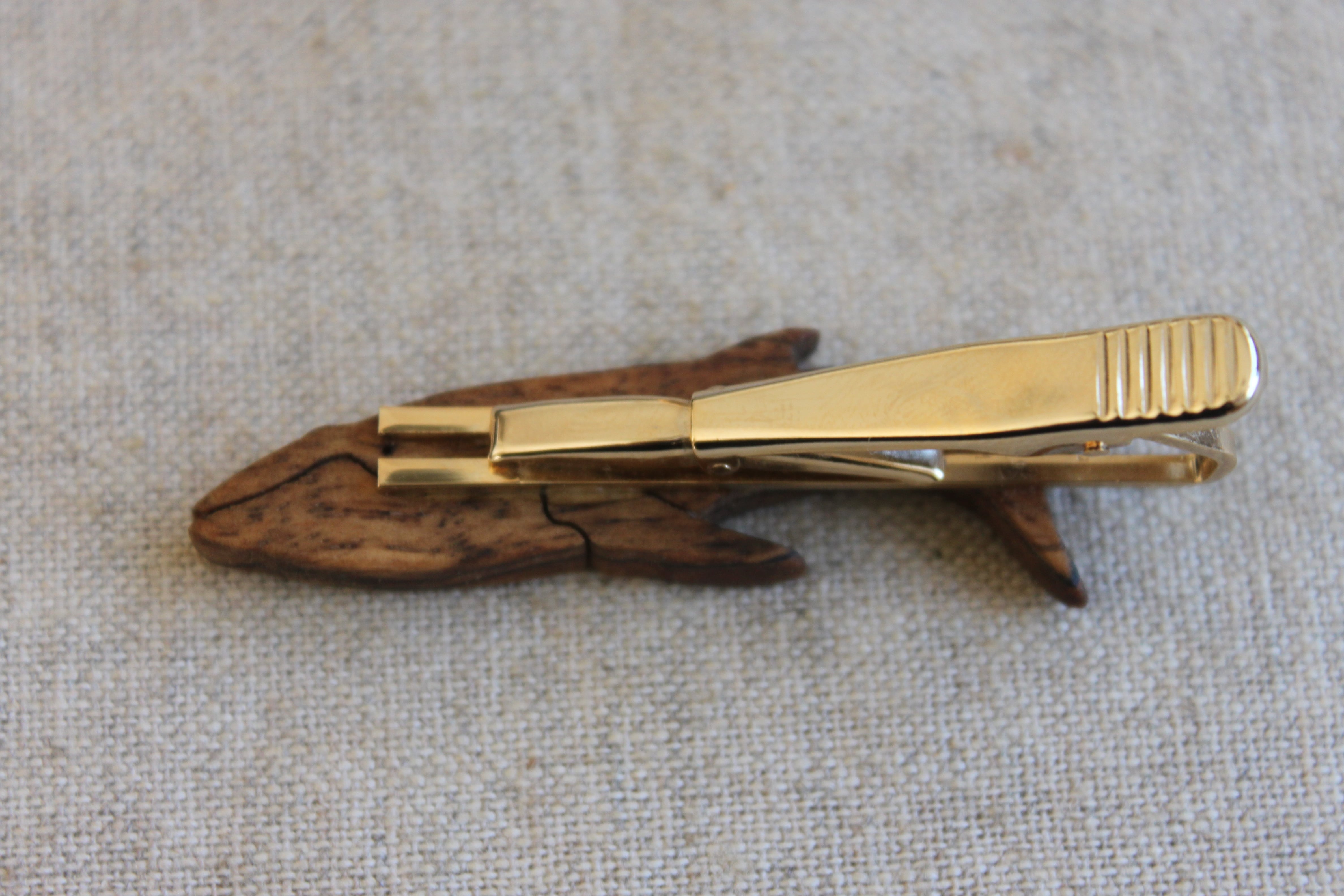 木材の木目、色を生かし丁寧に仕上げ深い光沢を持った他には無い一点物のネクタイピンです。