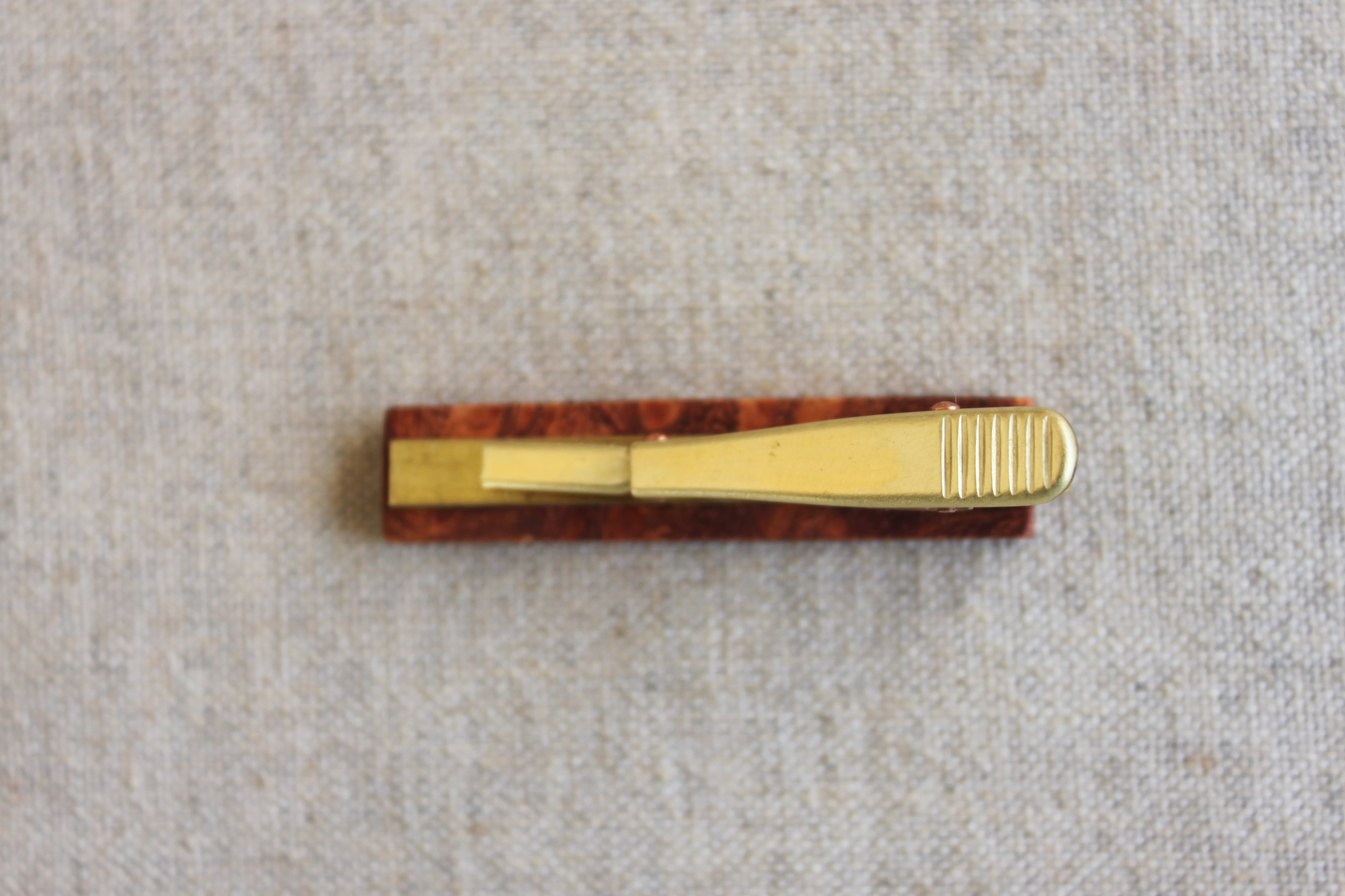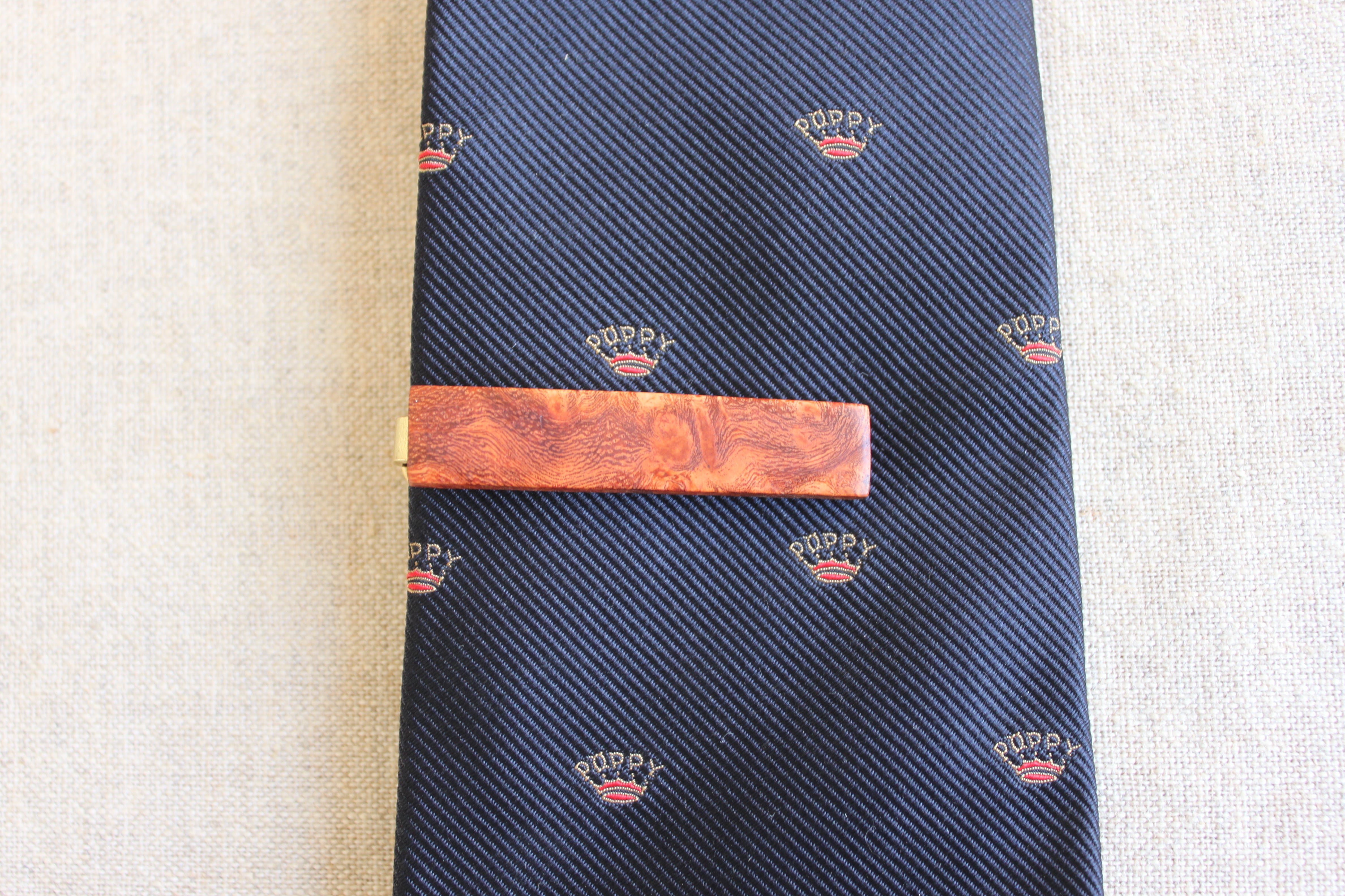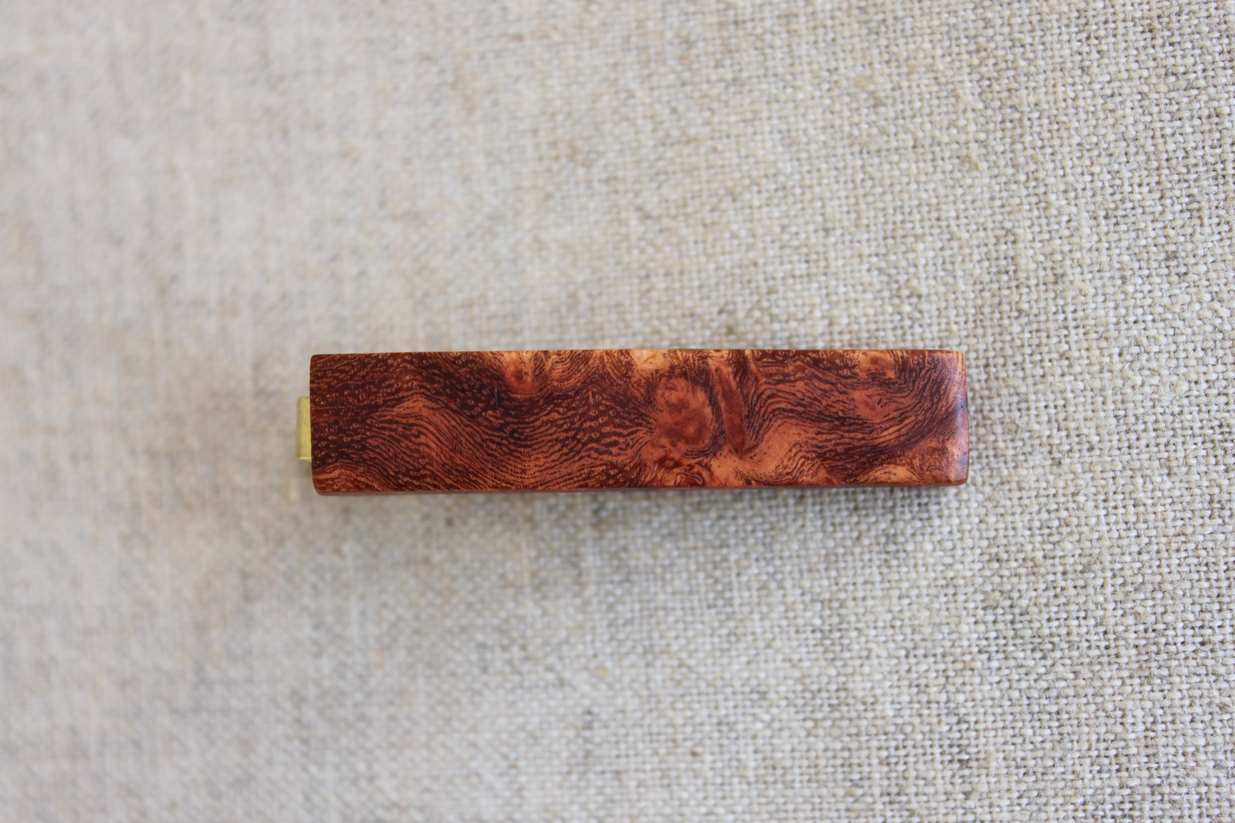 木材の木目、色を生かし丁寧に仕上げ深い光沢を持った他には無い一点物のネクタイピンです。