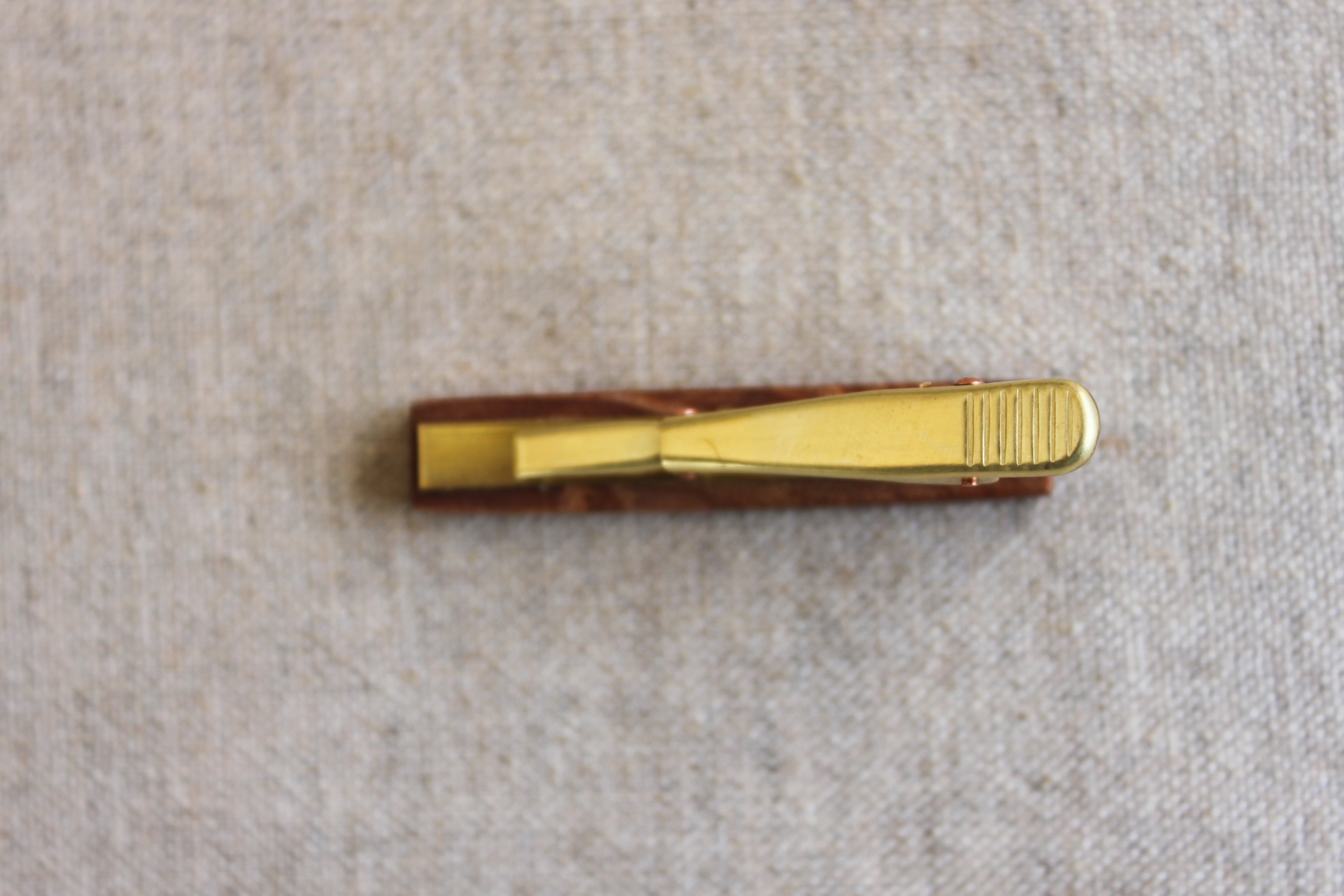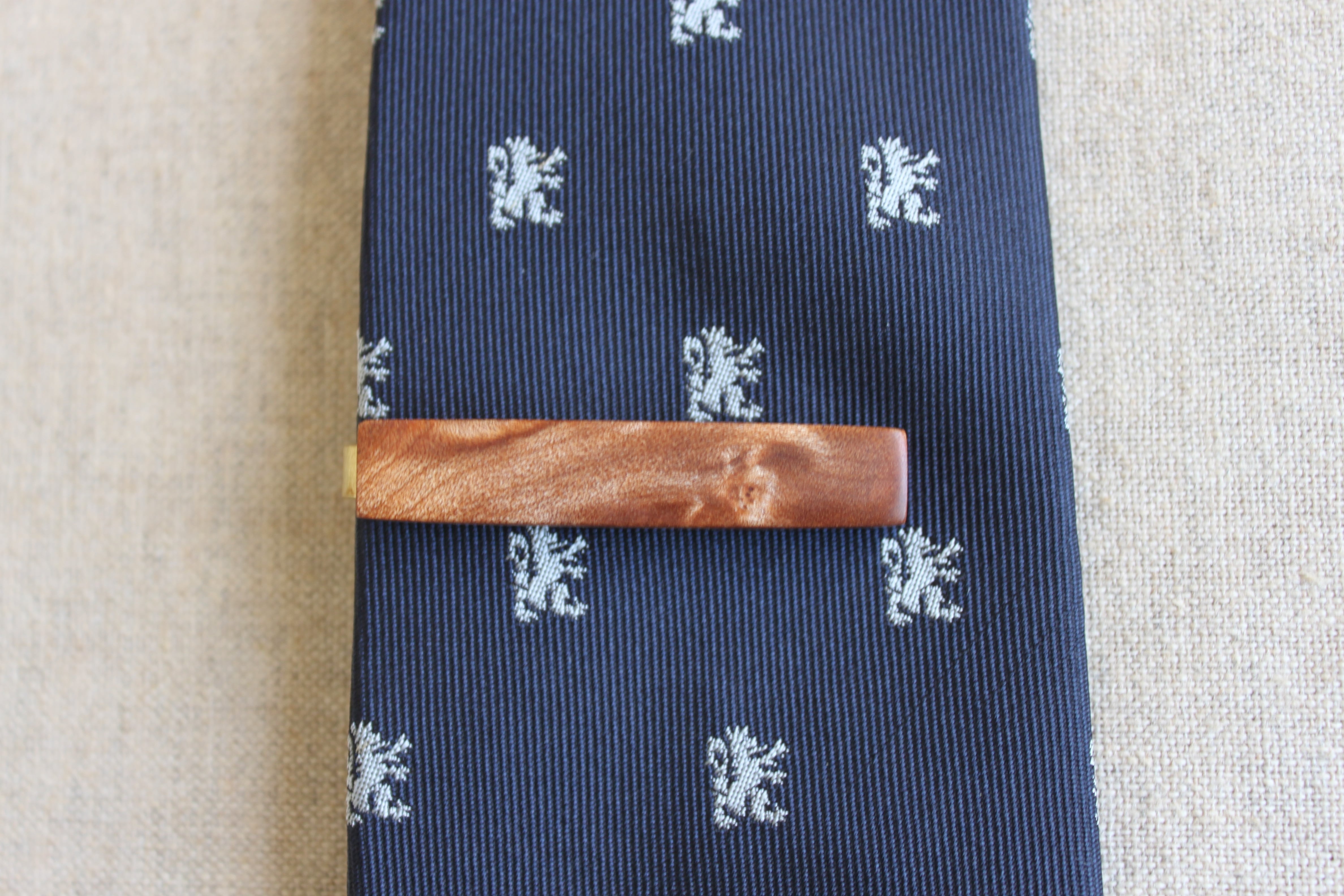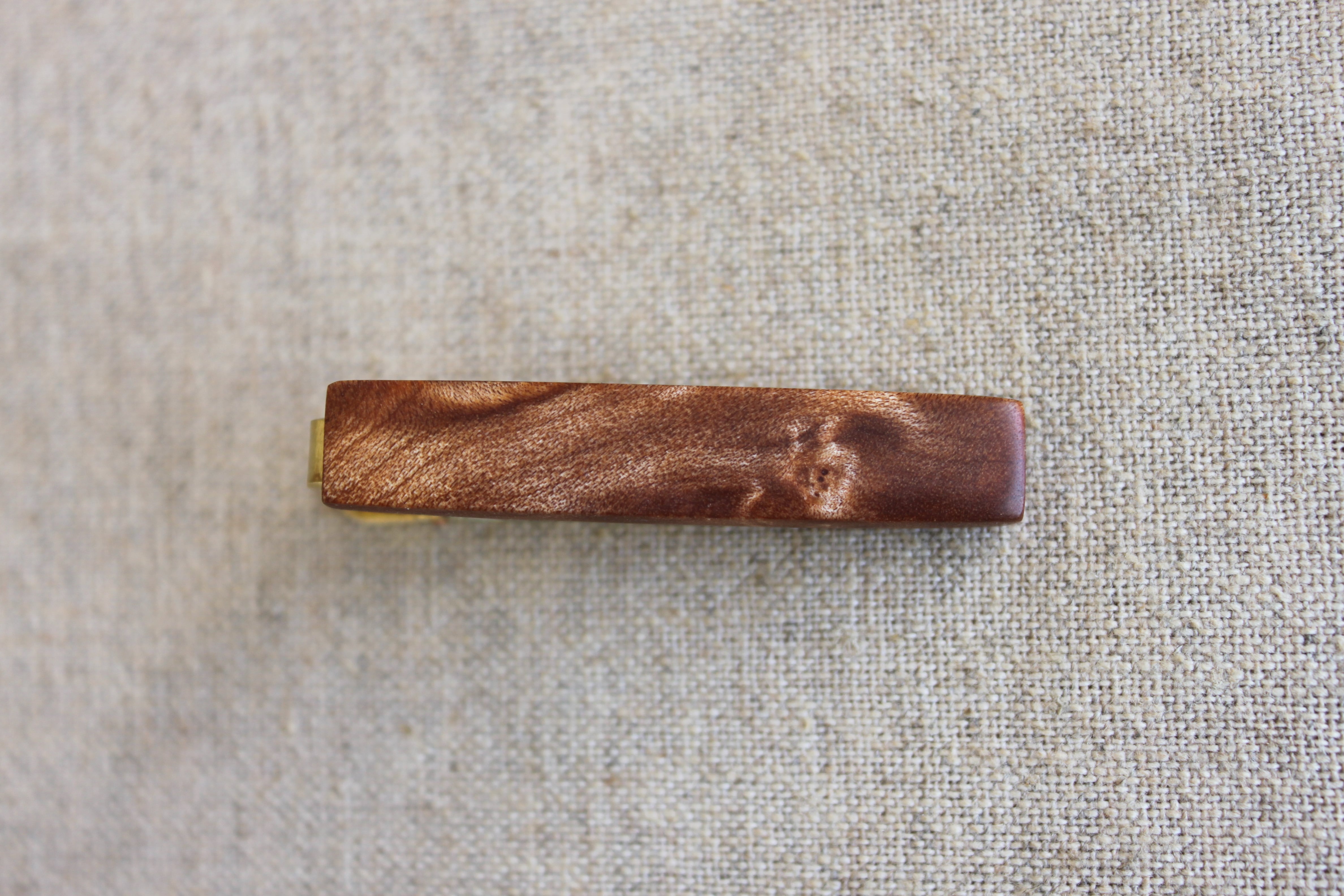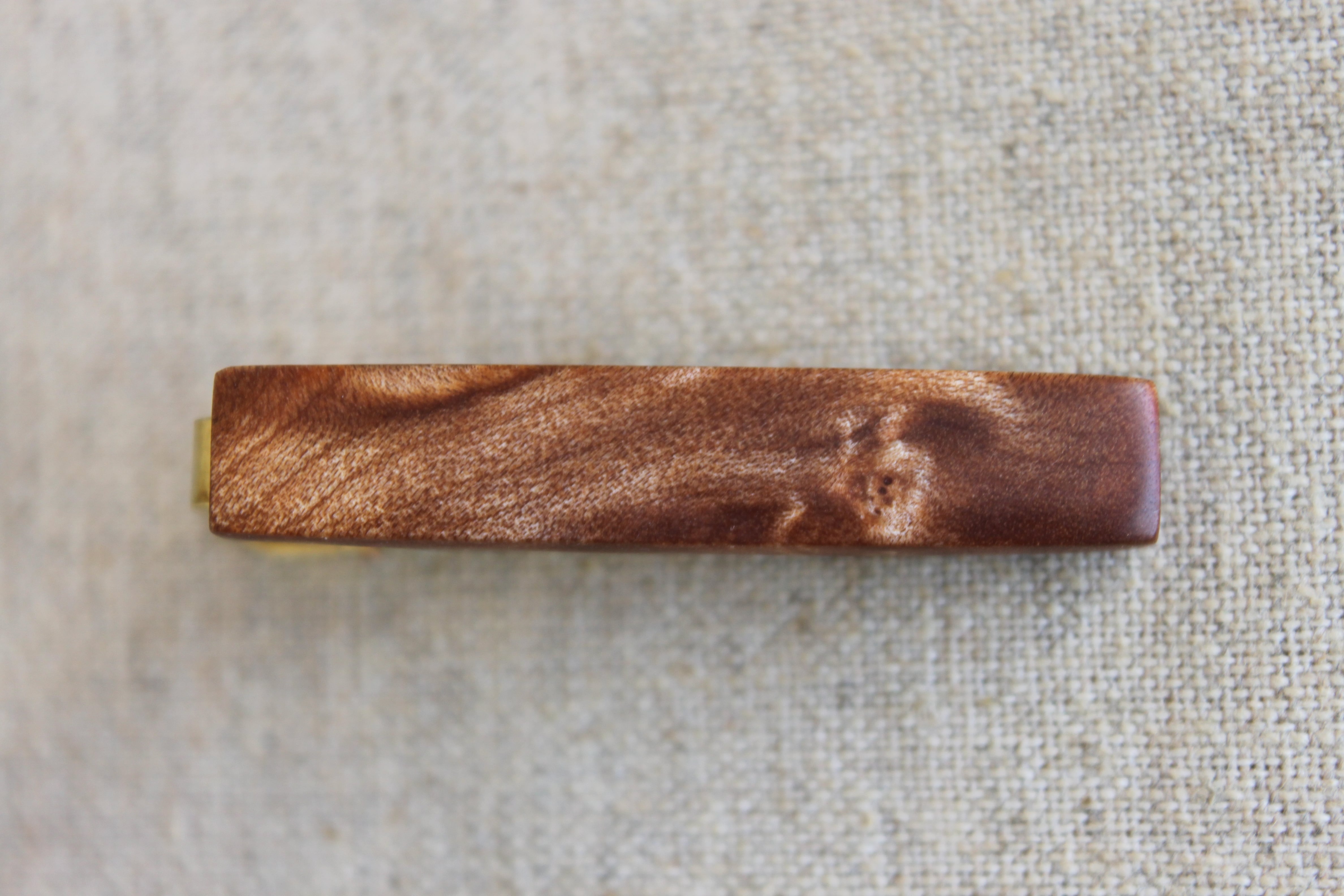 木材の木目、色を生かし丁寧に仕上げ深い光沢を持った他には無い一点物のネクタイピンです。