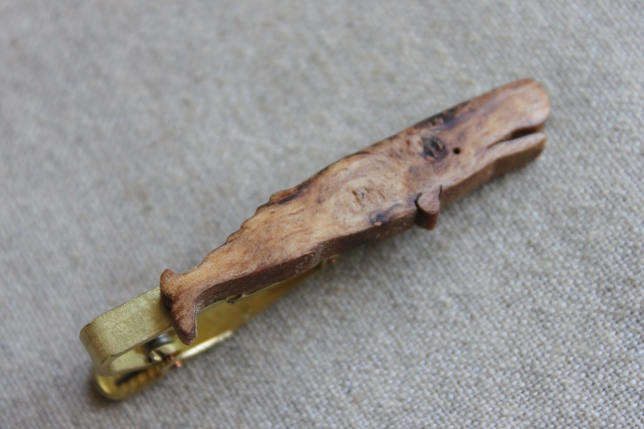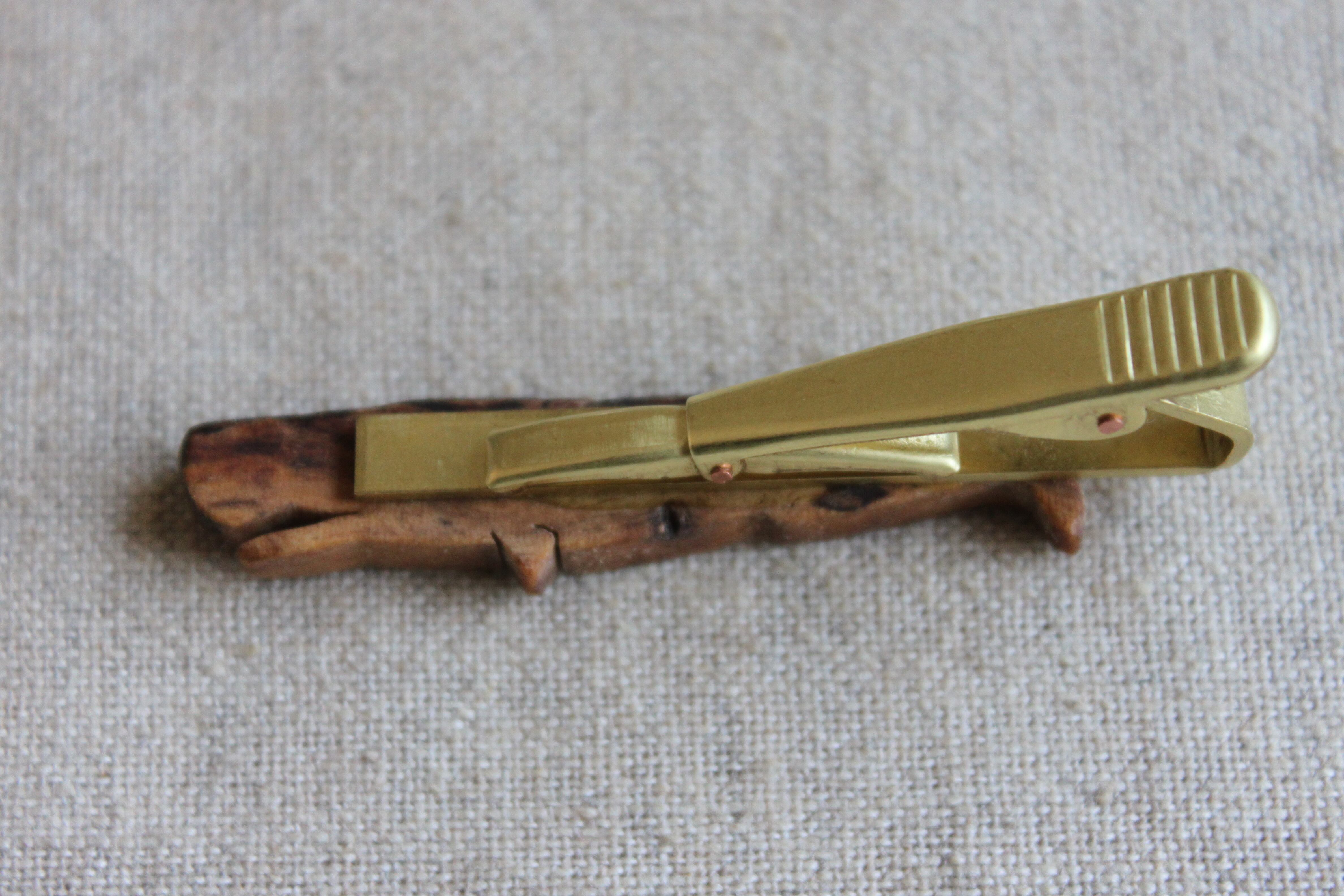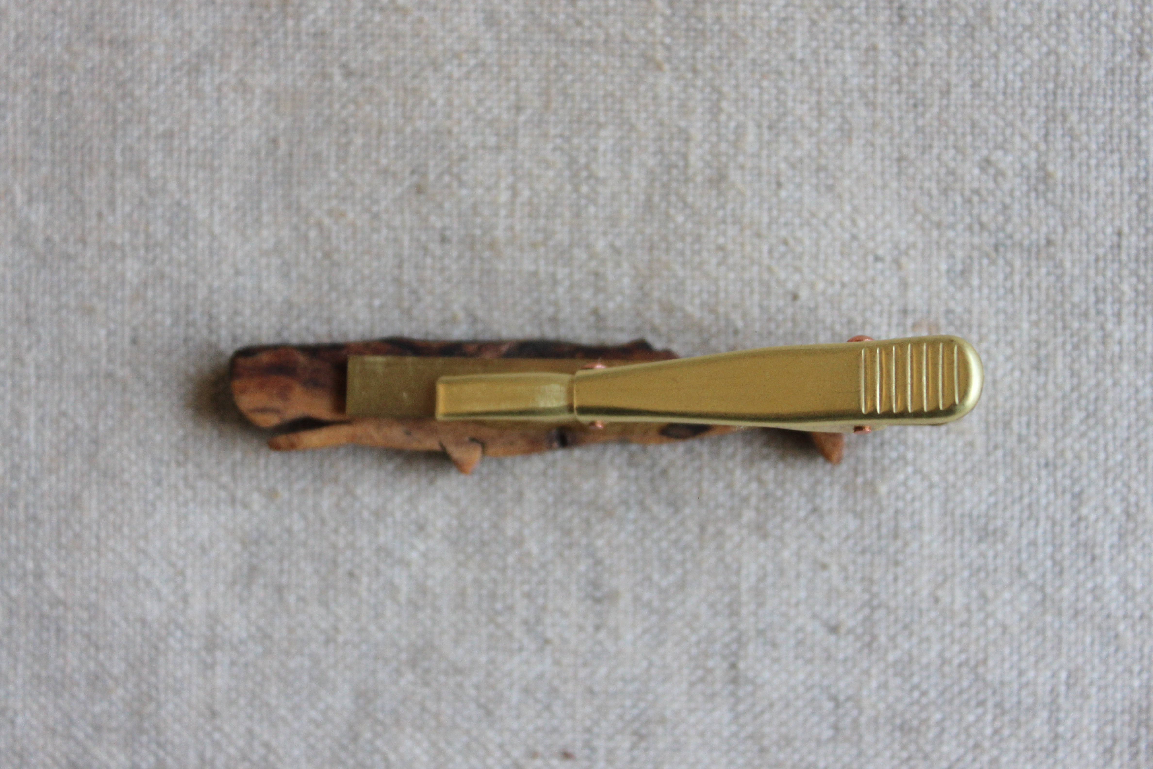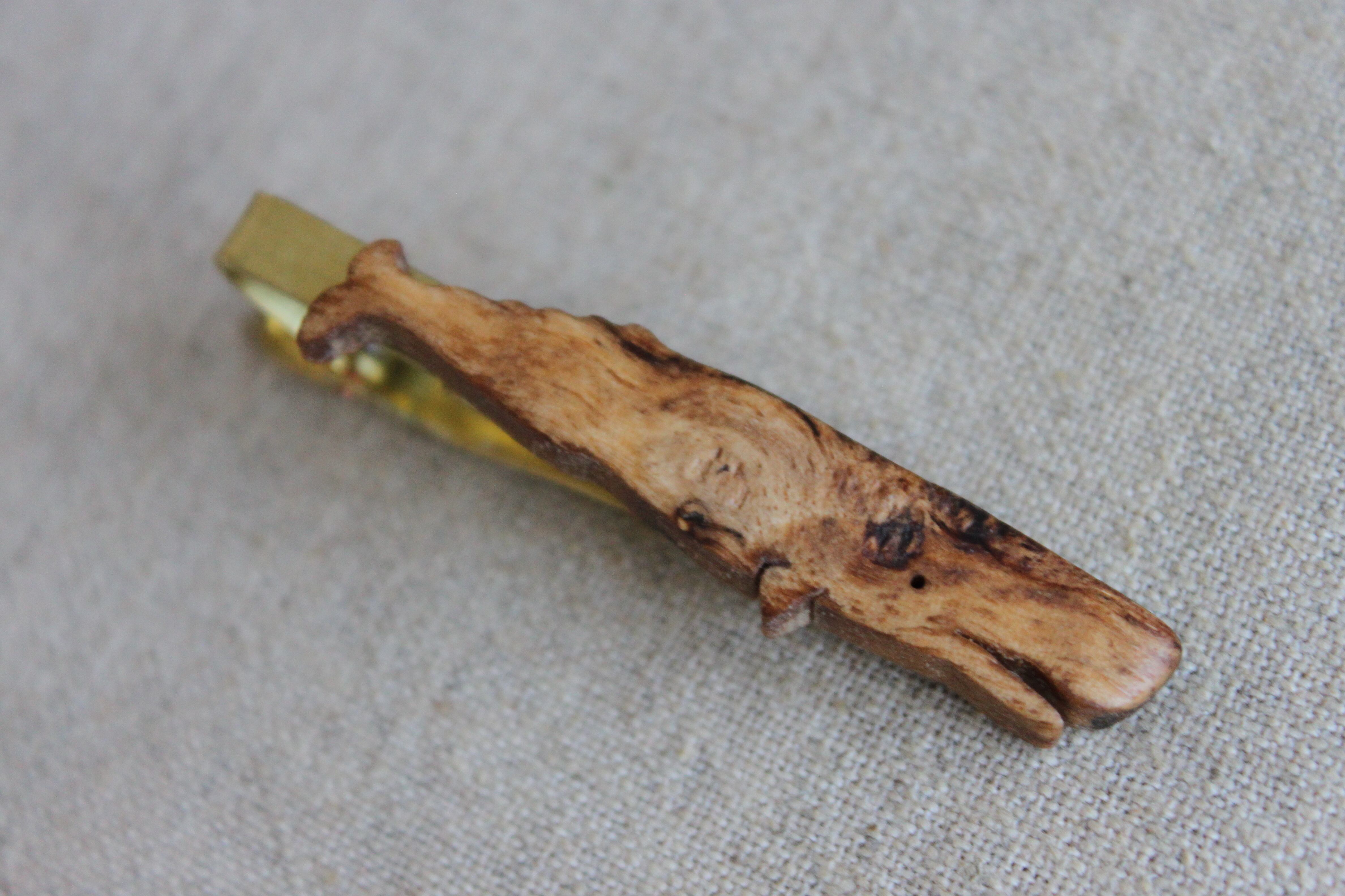 木材の木目、色を生かし丁寧に仕上げ深い光沢を持った他には無い一点物のネクタイピンです。