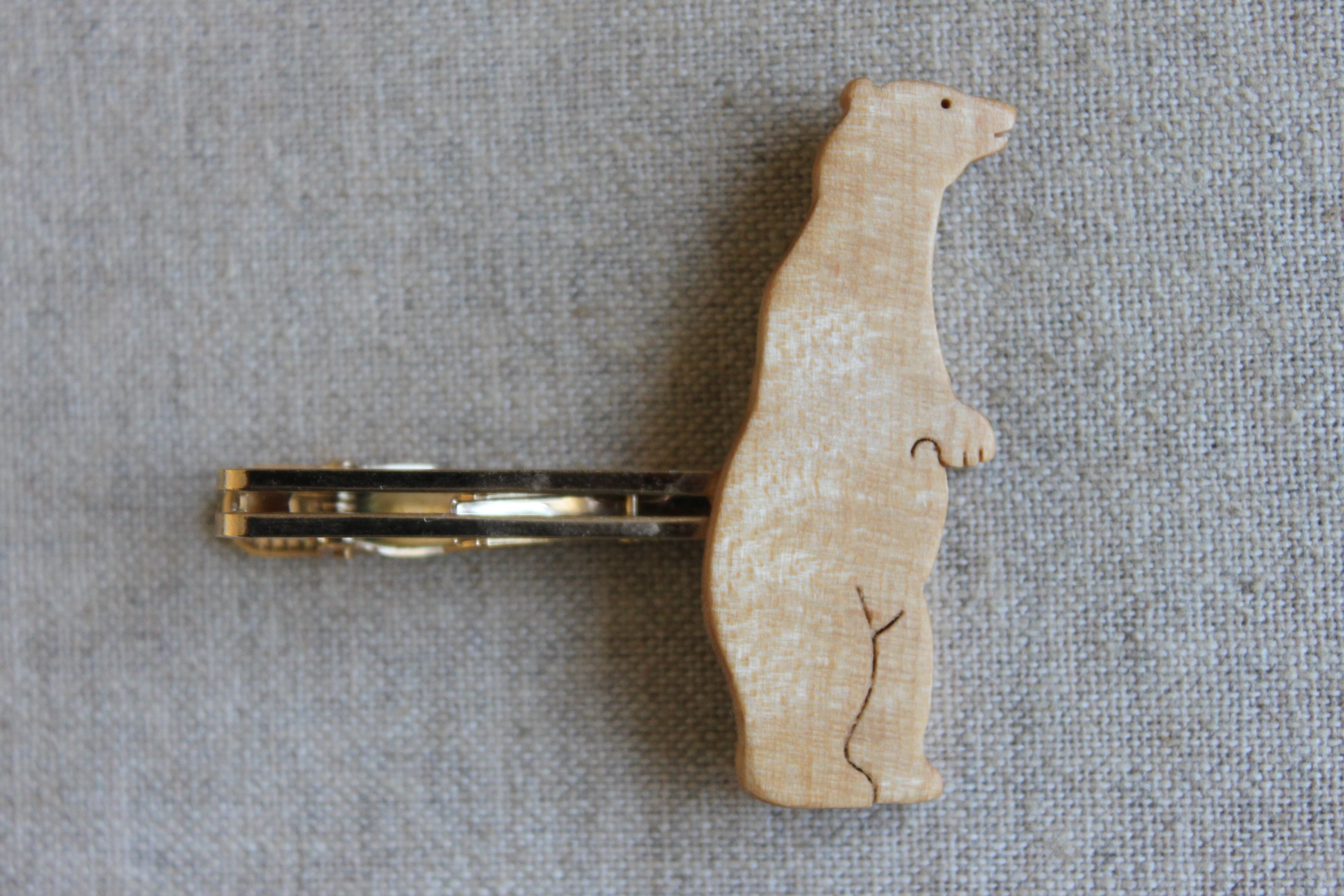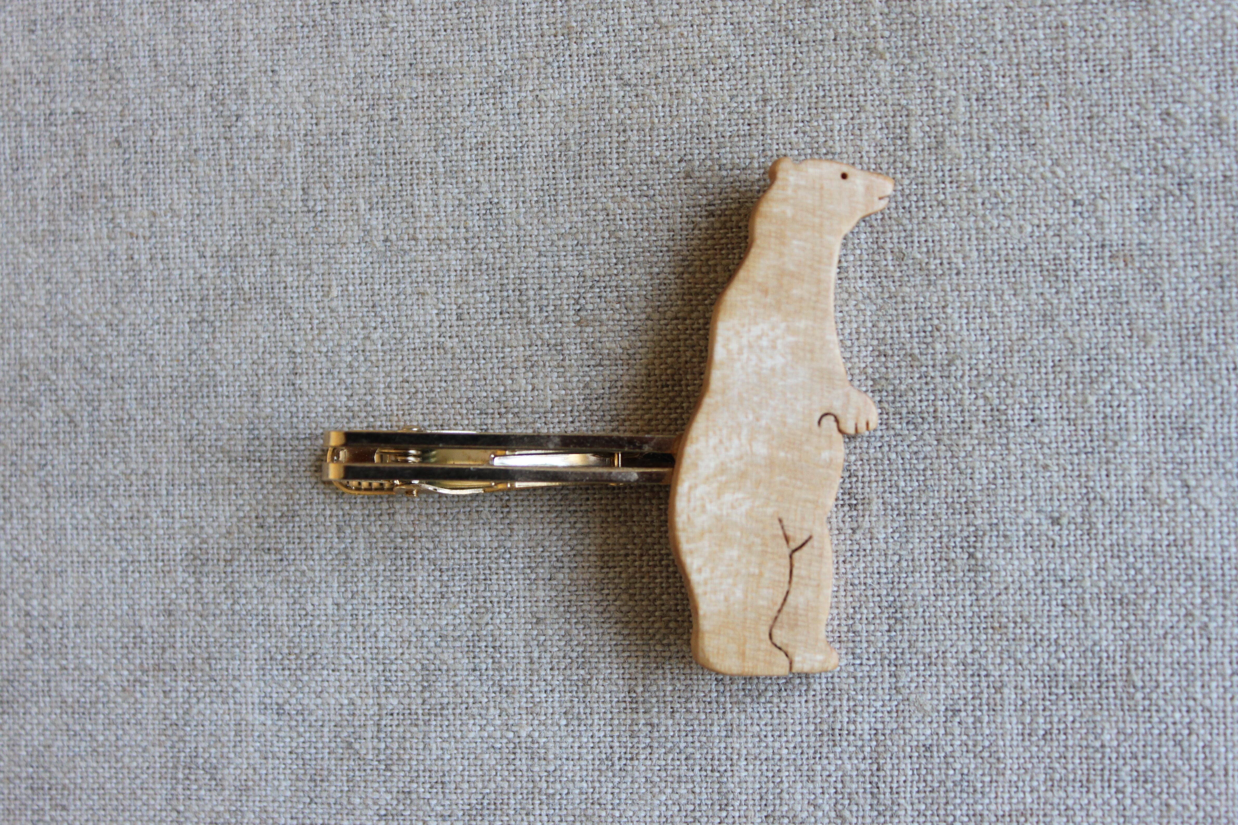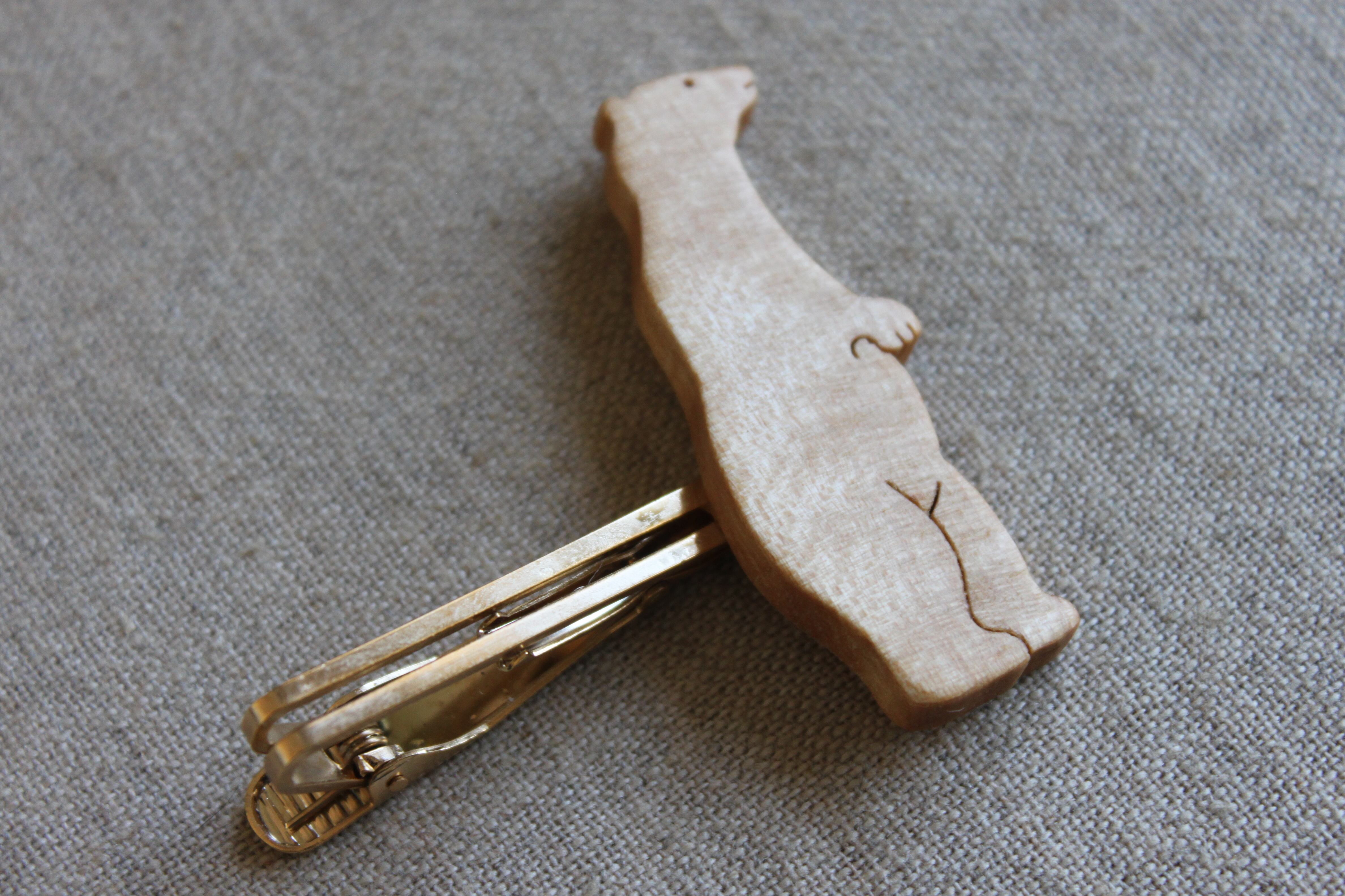 木材の木目、色を生かし丁寧に仕上げ深い光沢を持った他には無い一点物のネクタイピンです。