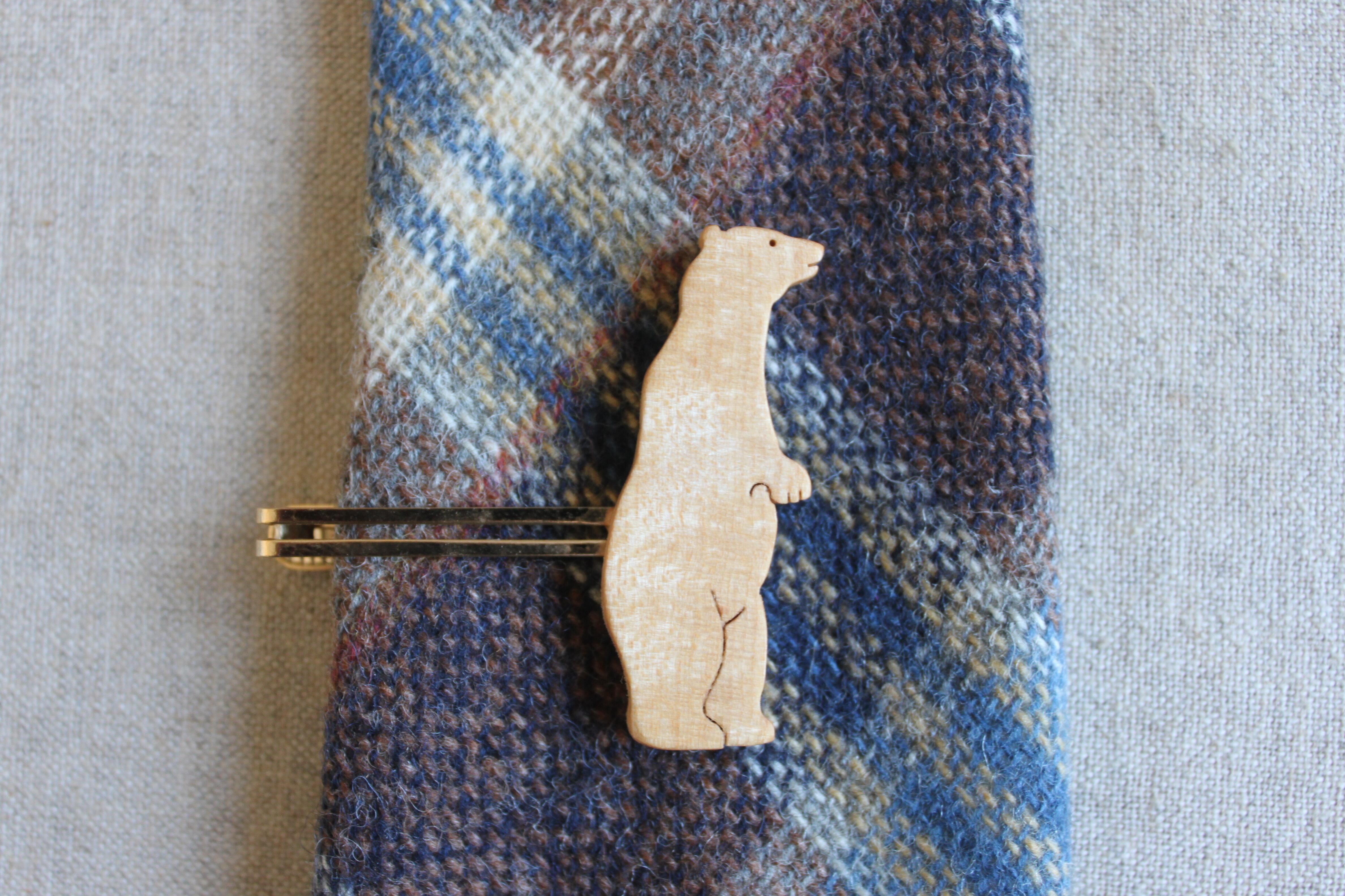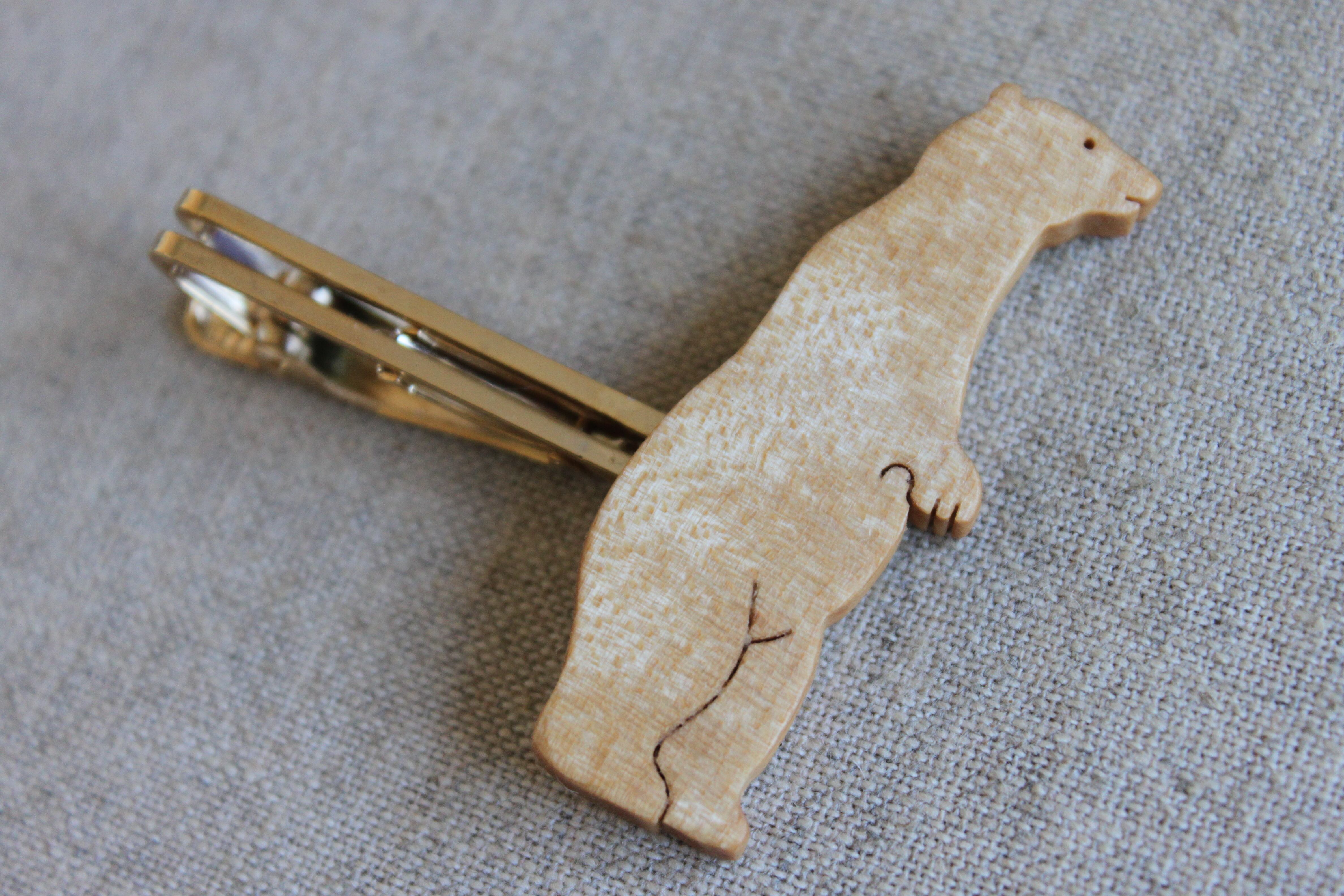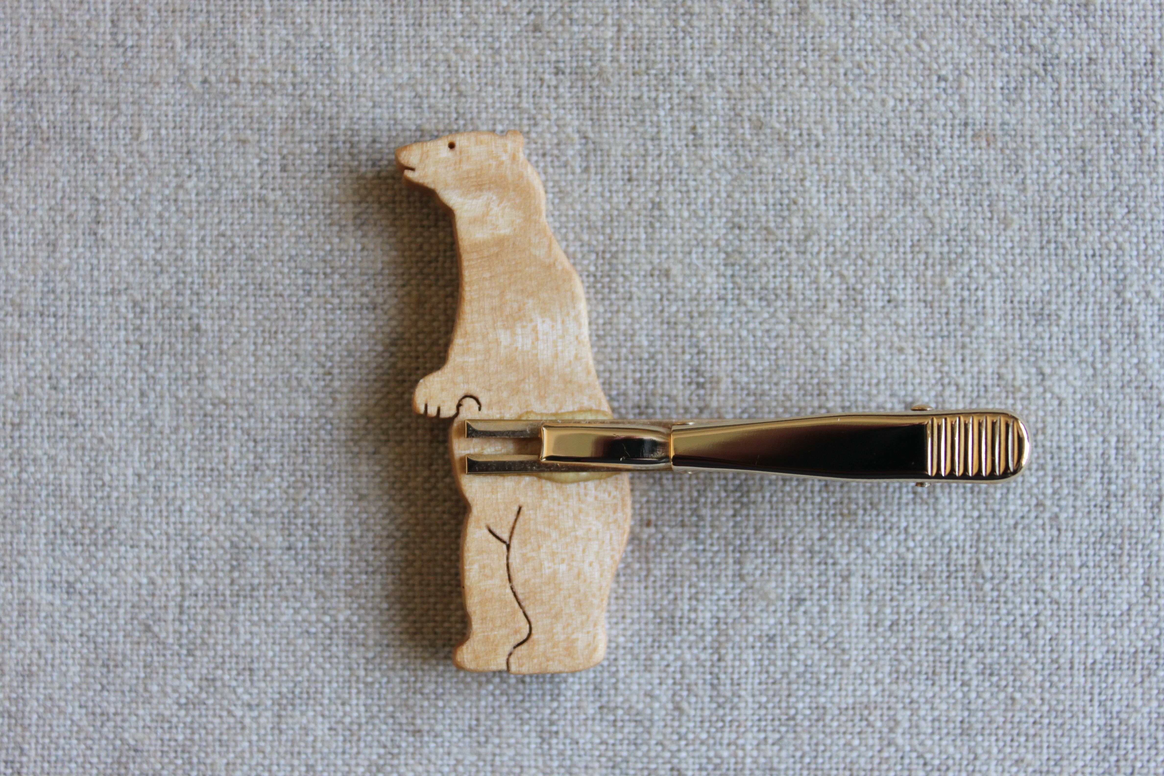 木材の木目、色を生かし丁寧に仕上げ深い光沢を持った他には無い一点物のネクタイピンです。