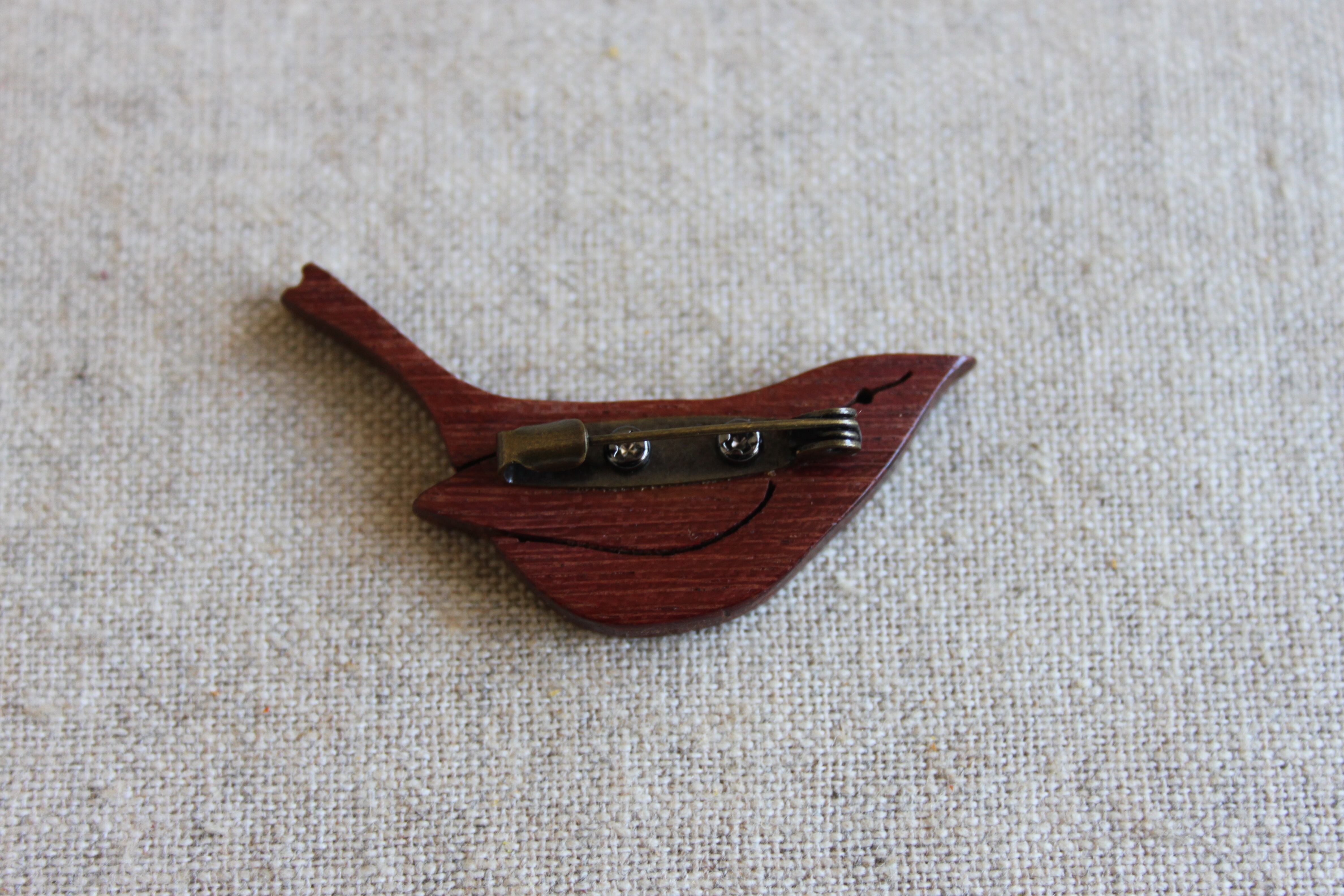 木製ミソサザイブローチ