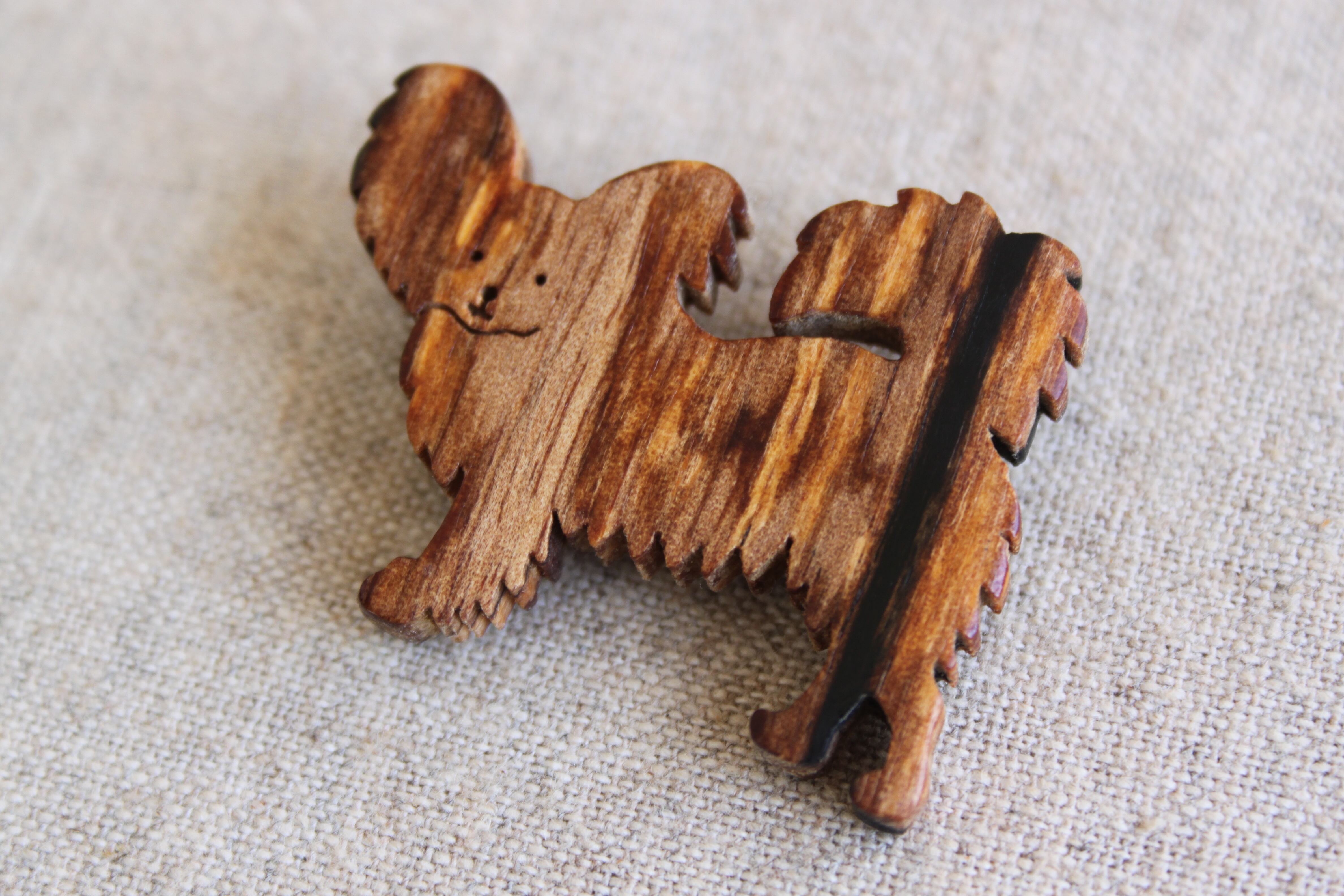 木材の木目、色を生かし丁寧に仕上げた他には無い一点物のブローチです。