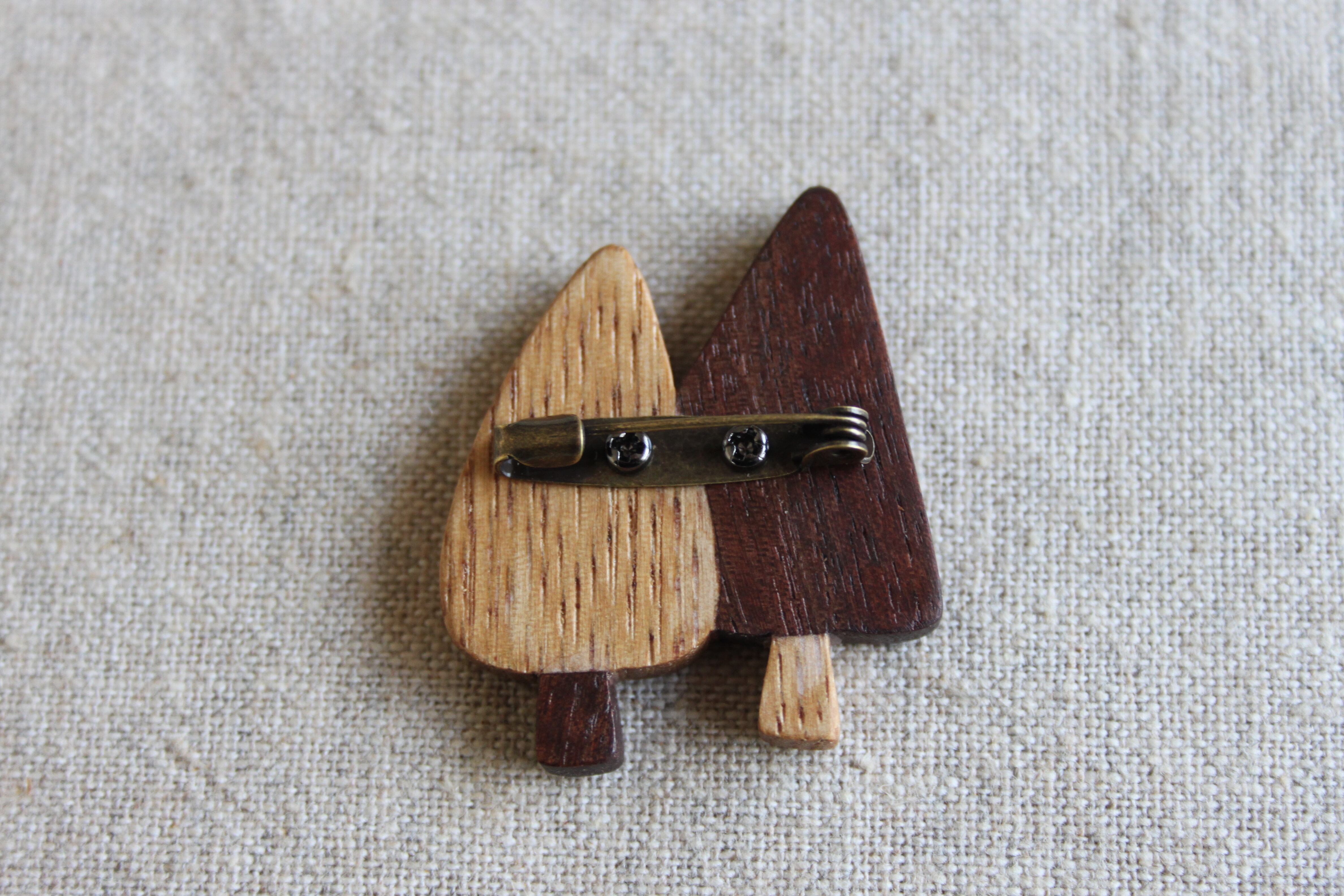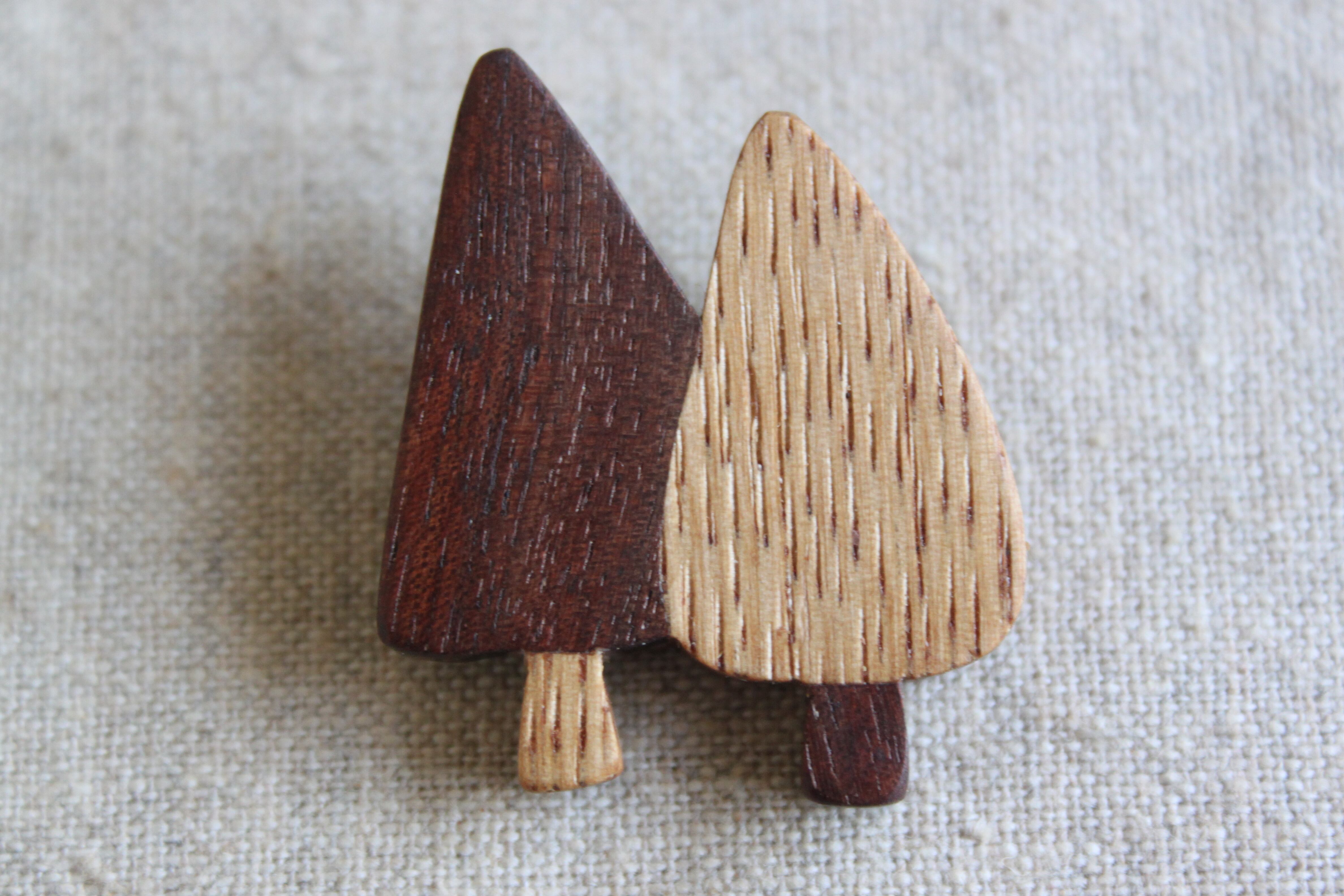 木製樹木ブローチ