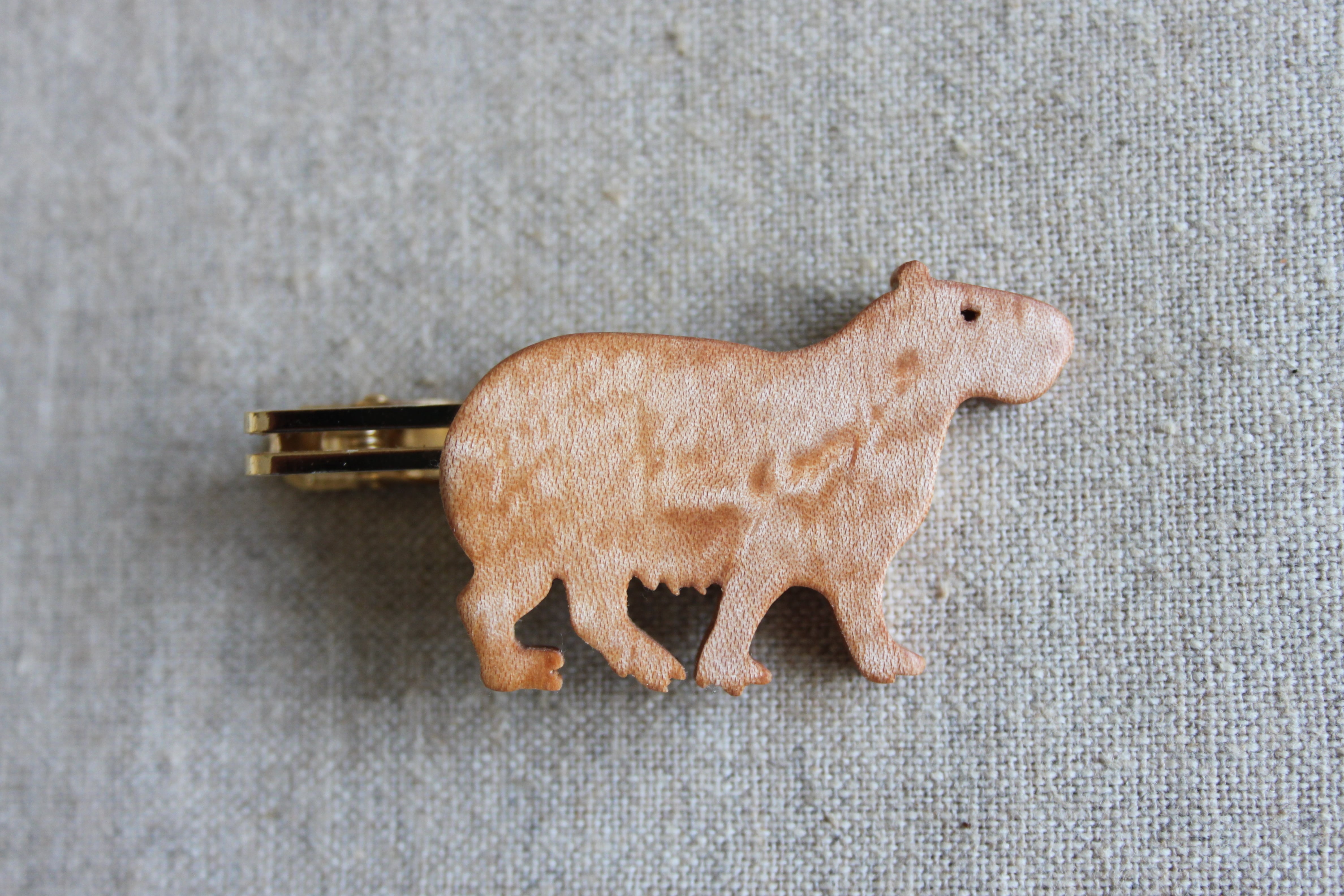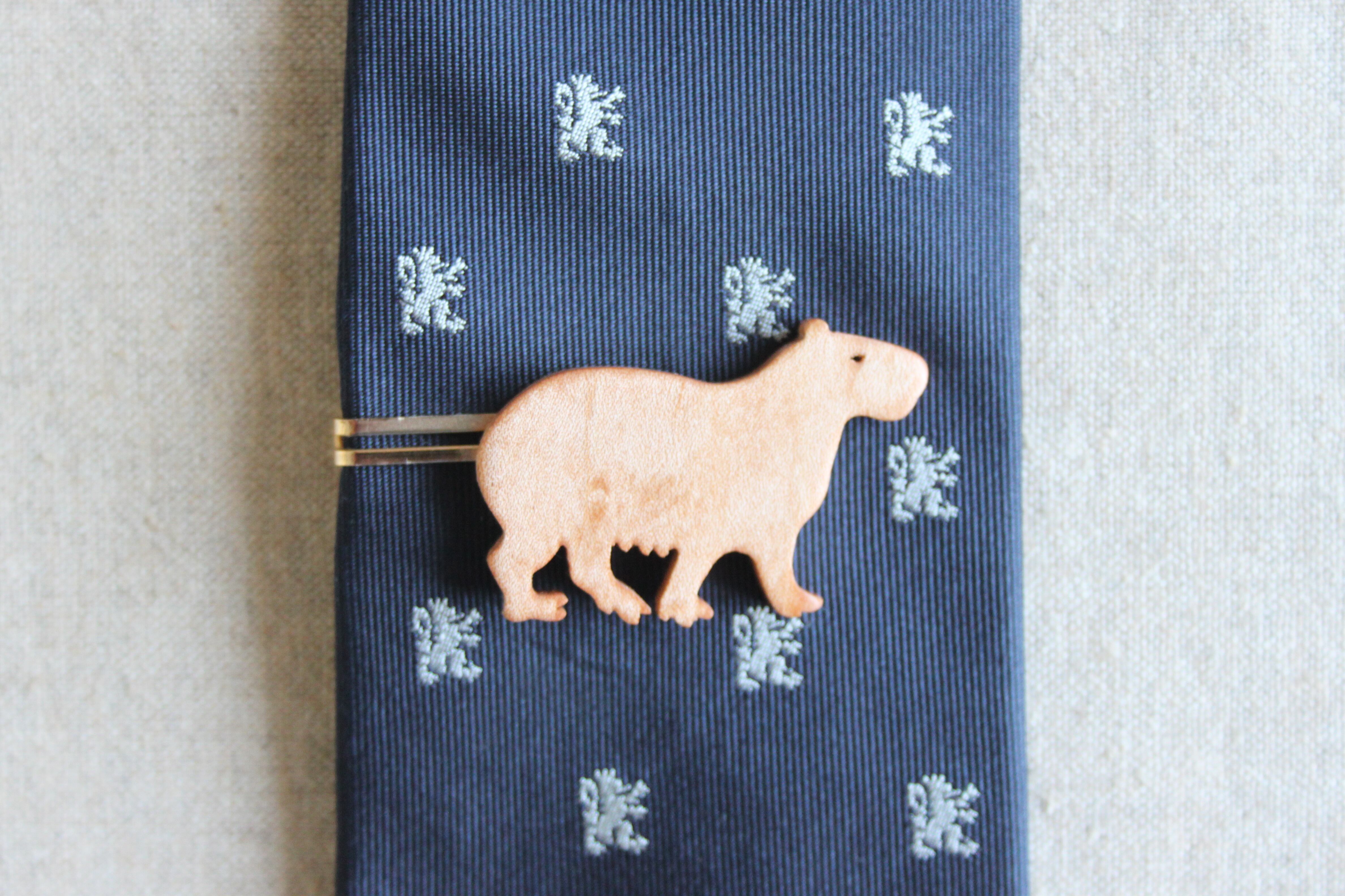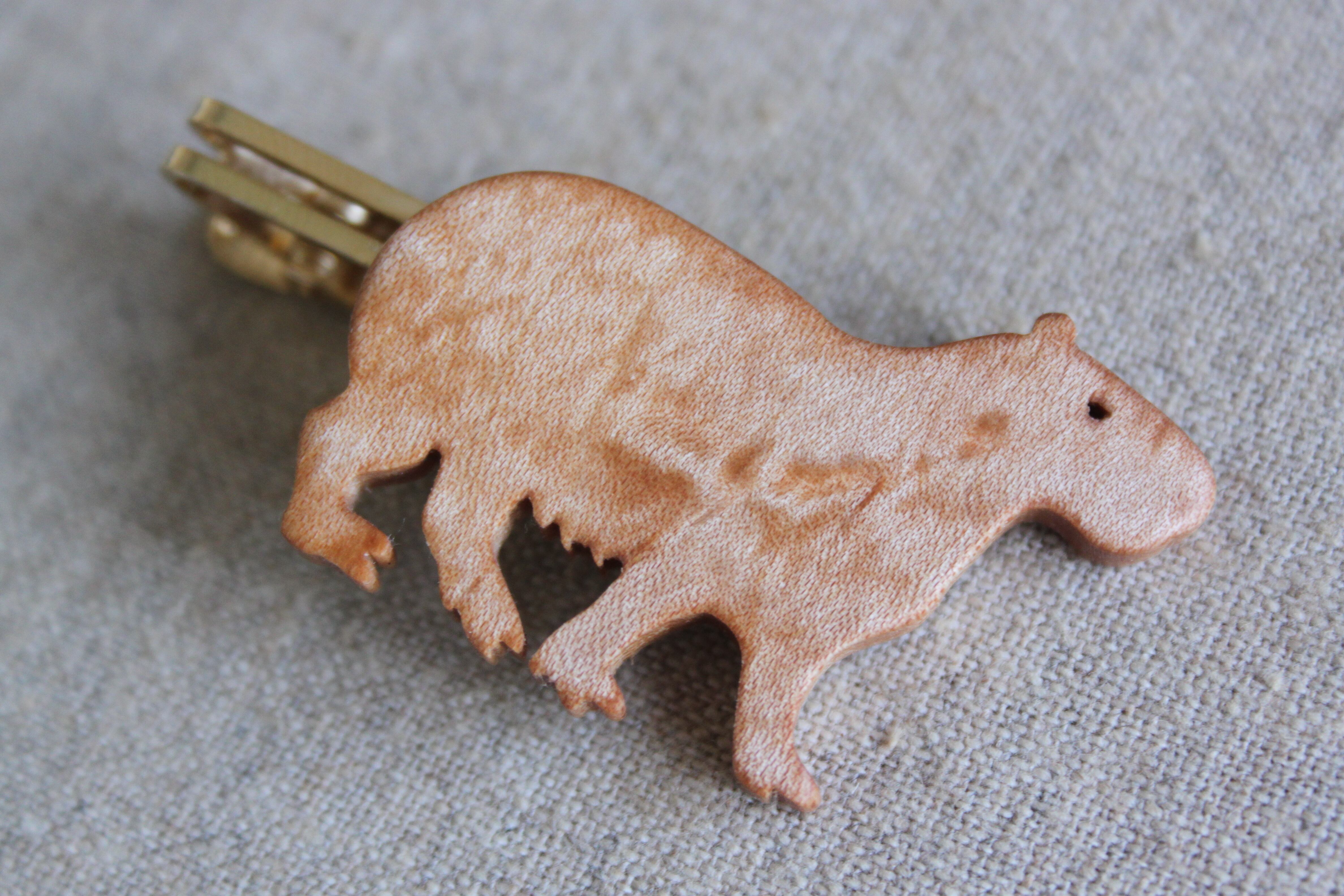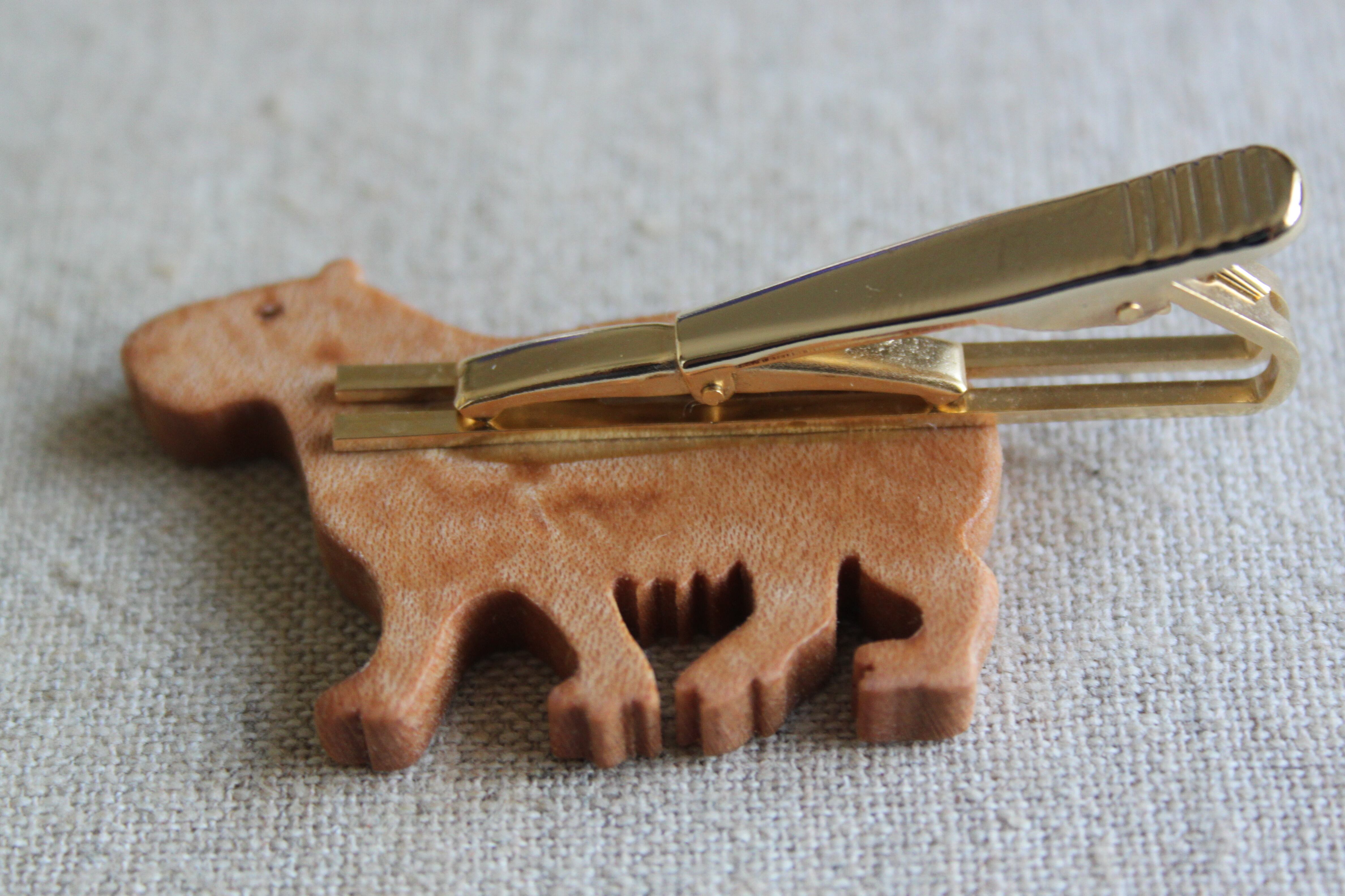 木材の木目、色を生かし丁寧に仕上げ深い光沢を持った他には無い一点物のネクタイピンです。