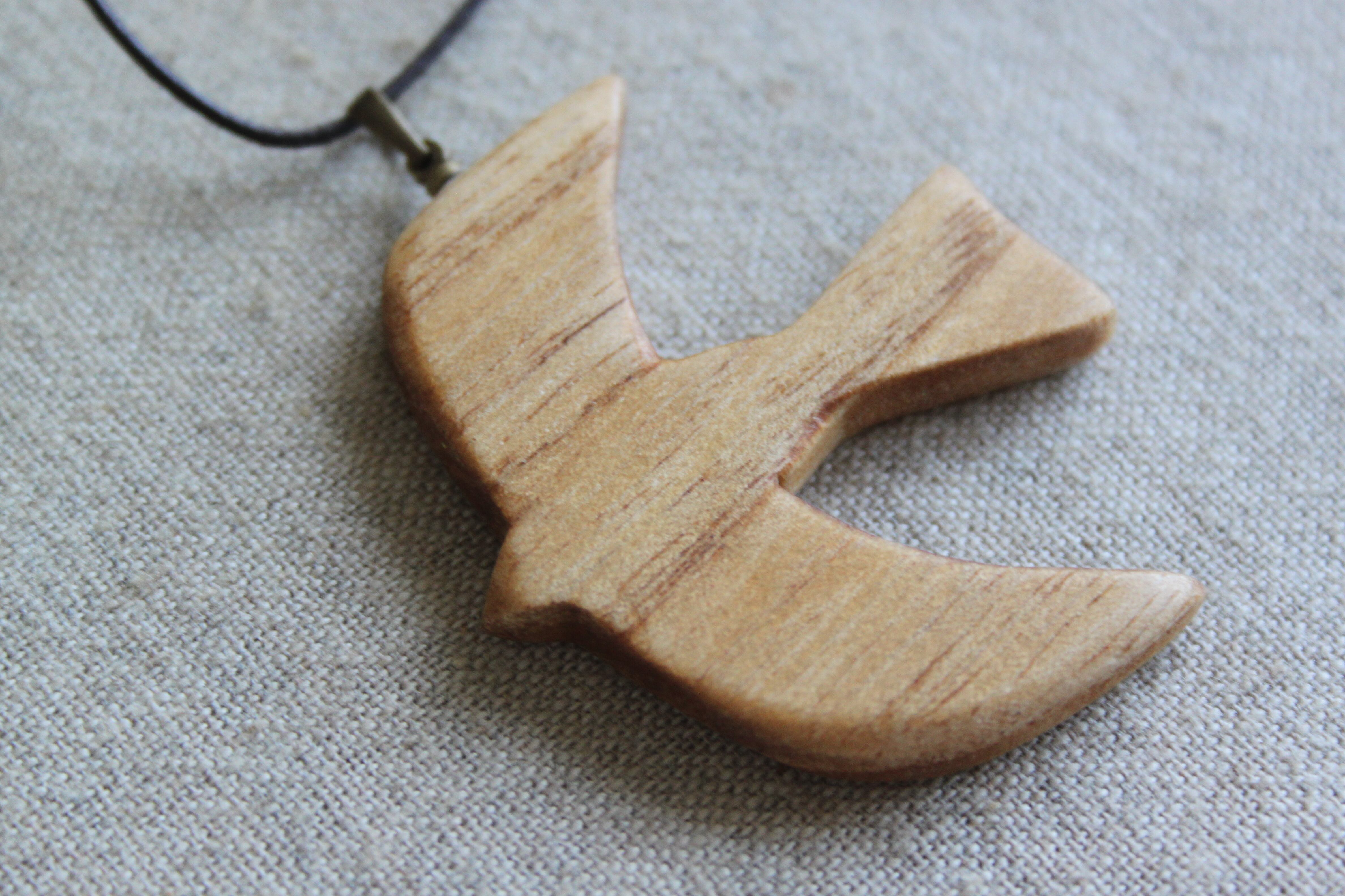 桐で作った鳥の軽量ペンダント