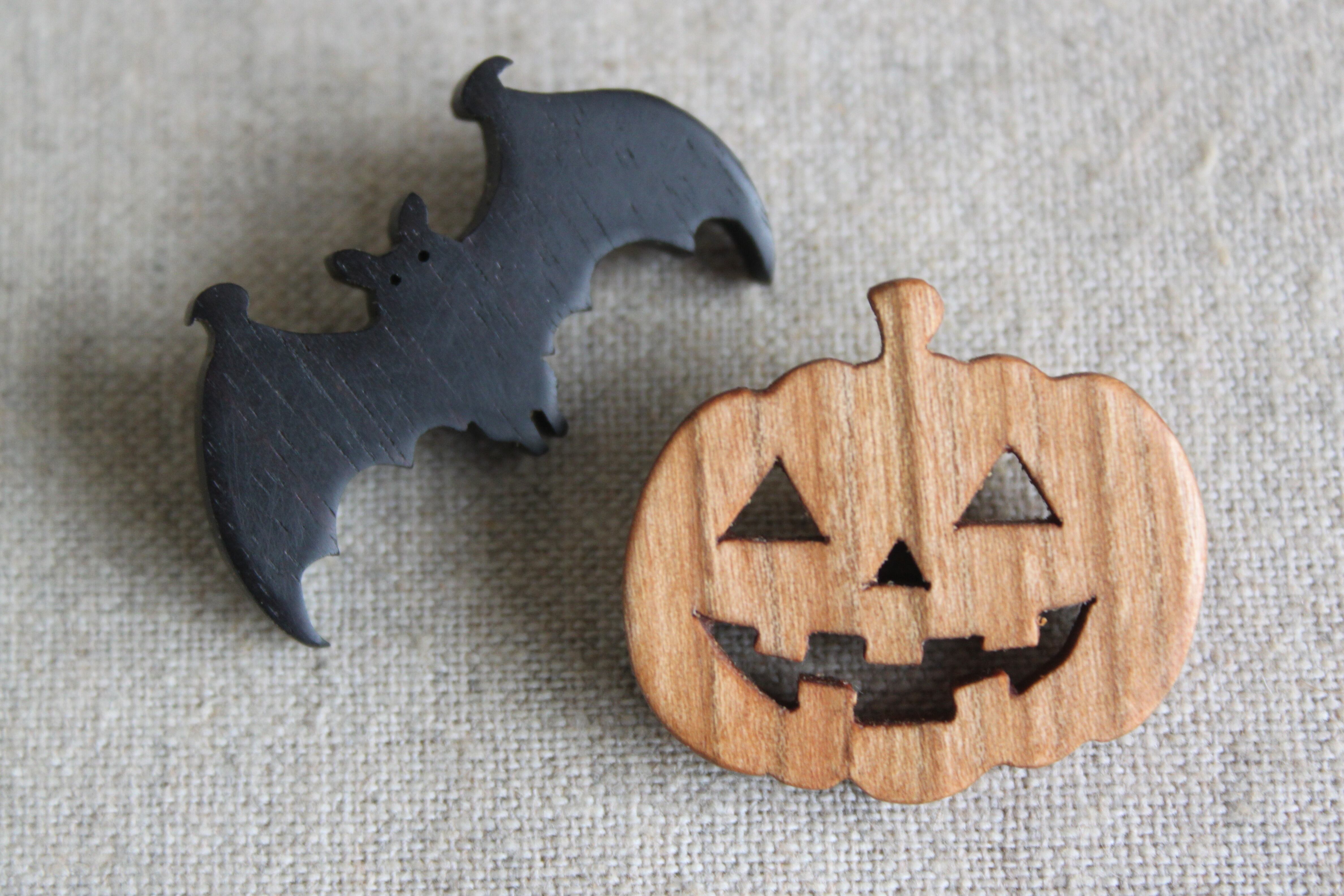 木製ハロウィンペアブローチ