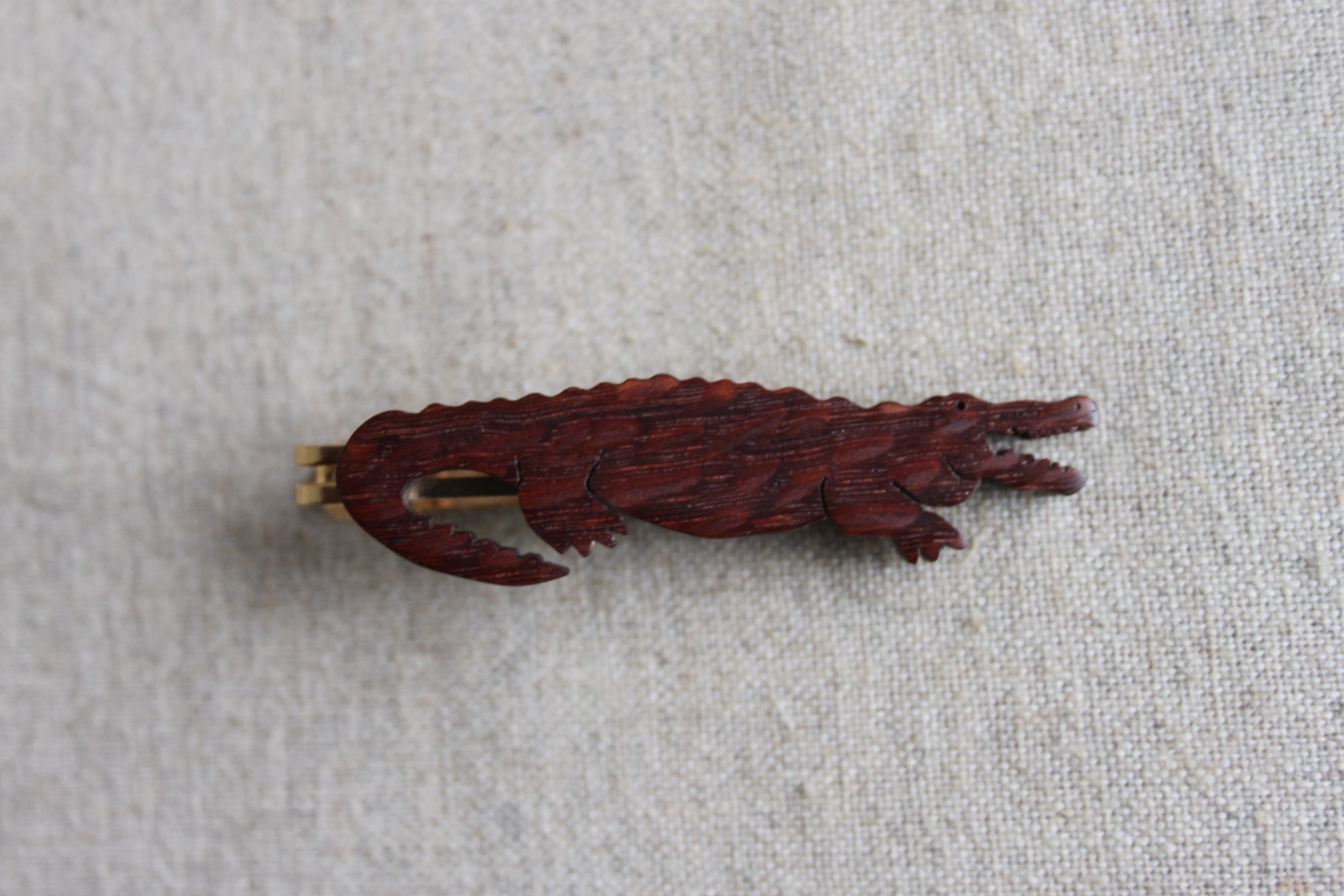 木製ワニネクタイピン