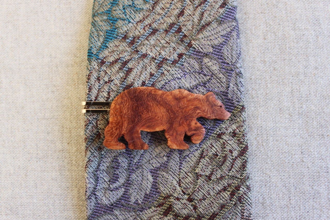 木材の木目、色を生かし丁寧に仕上げた他には無い一点物のネクタイピンです。