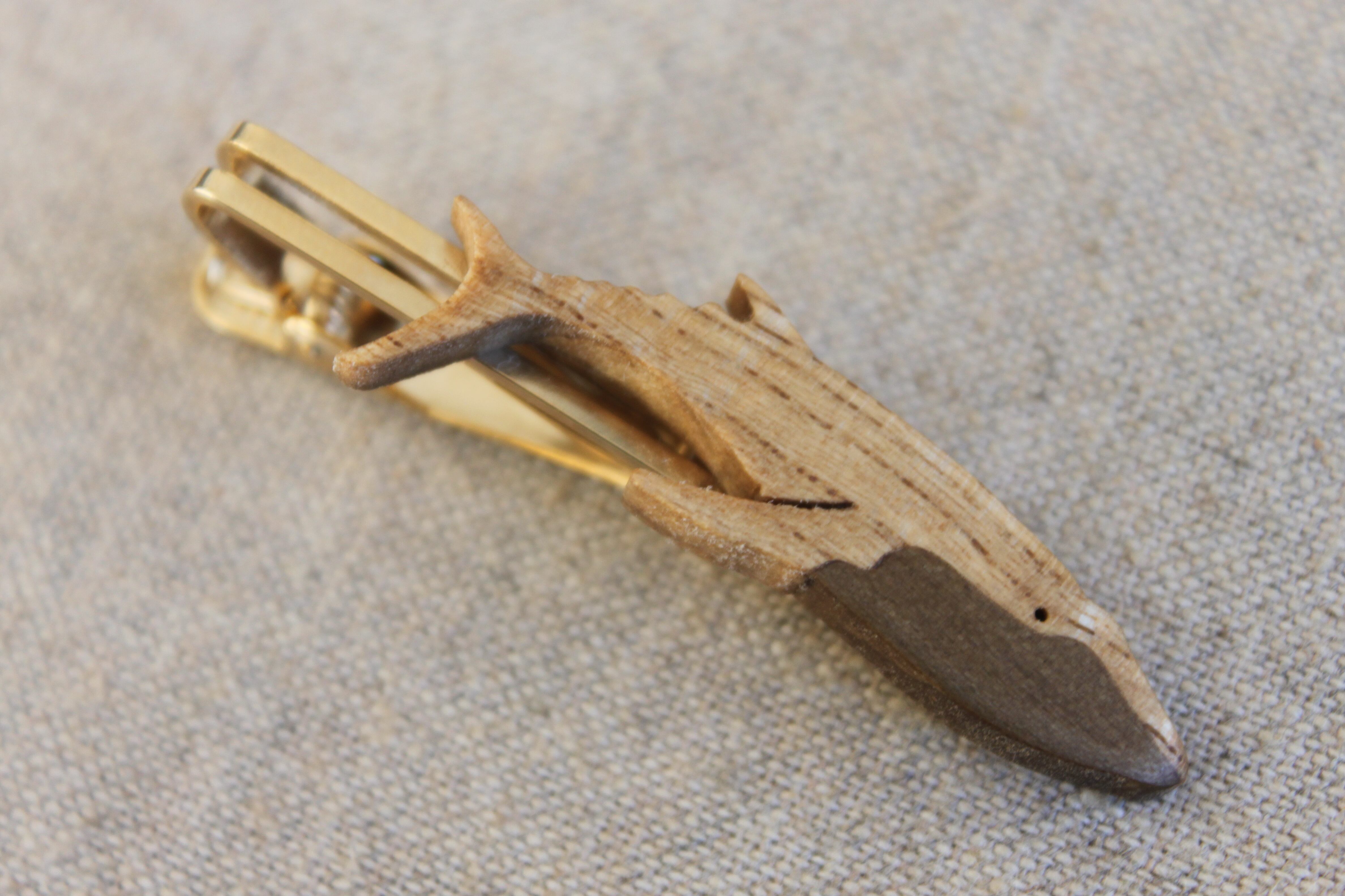 木材の木目、色を生かし丁寧に仕上げ深い光沢を持った他には無い一点物のネクタイピンです。