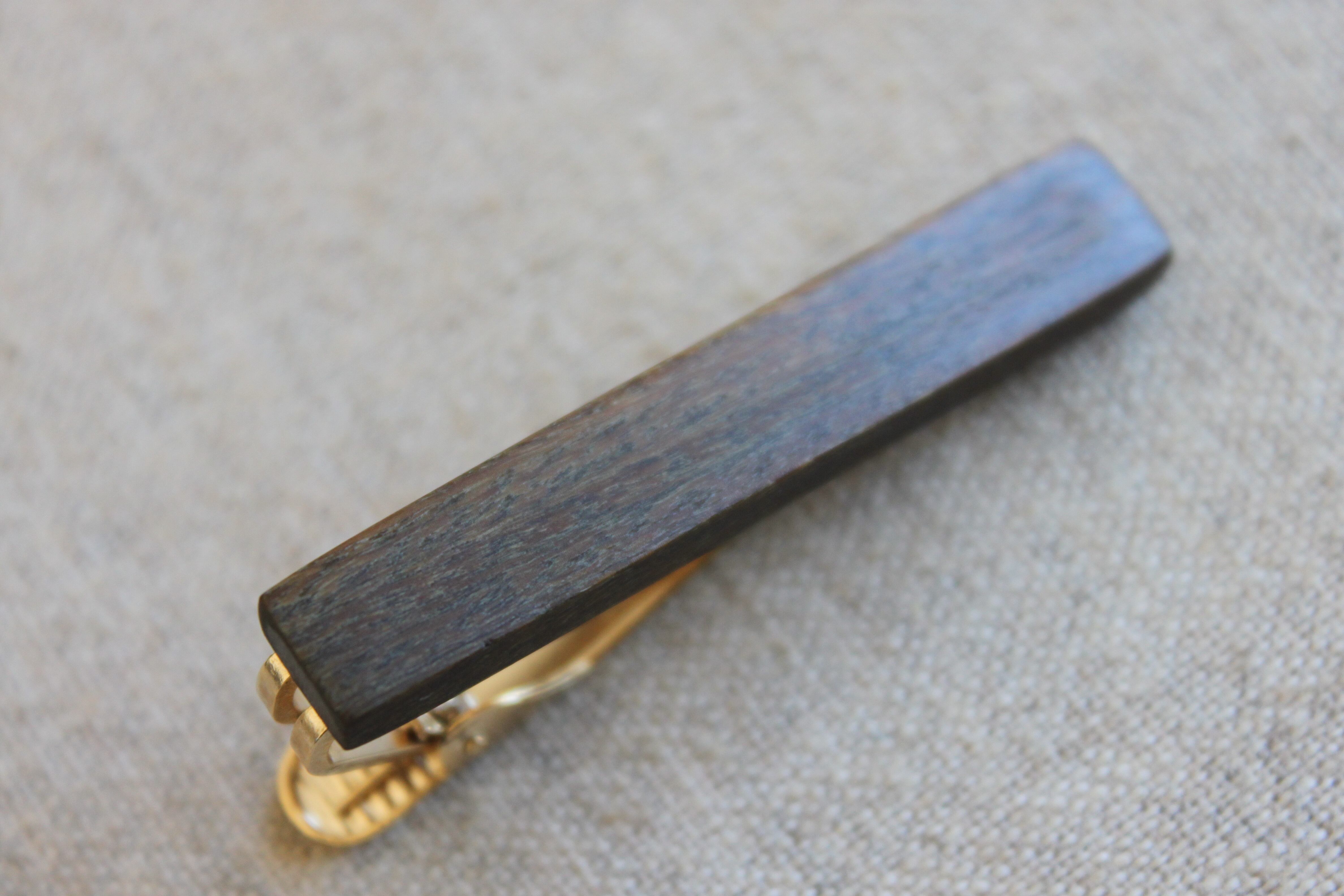 木材の木目、色を生かし丁寧に仕上げ深い光沢を持った他には無い一点物のネクタイピンです。
