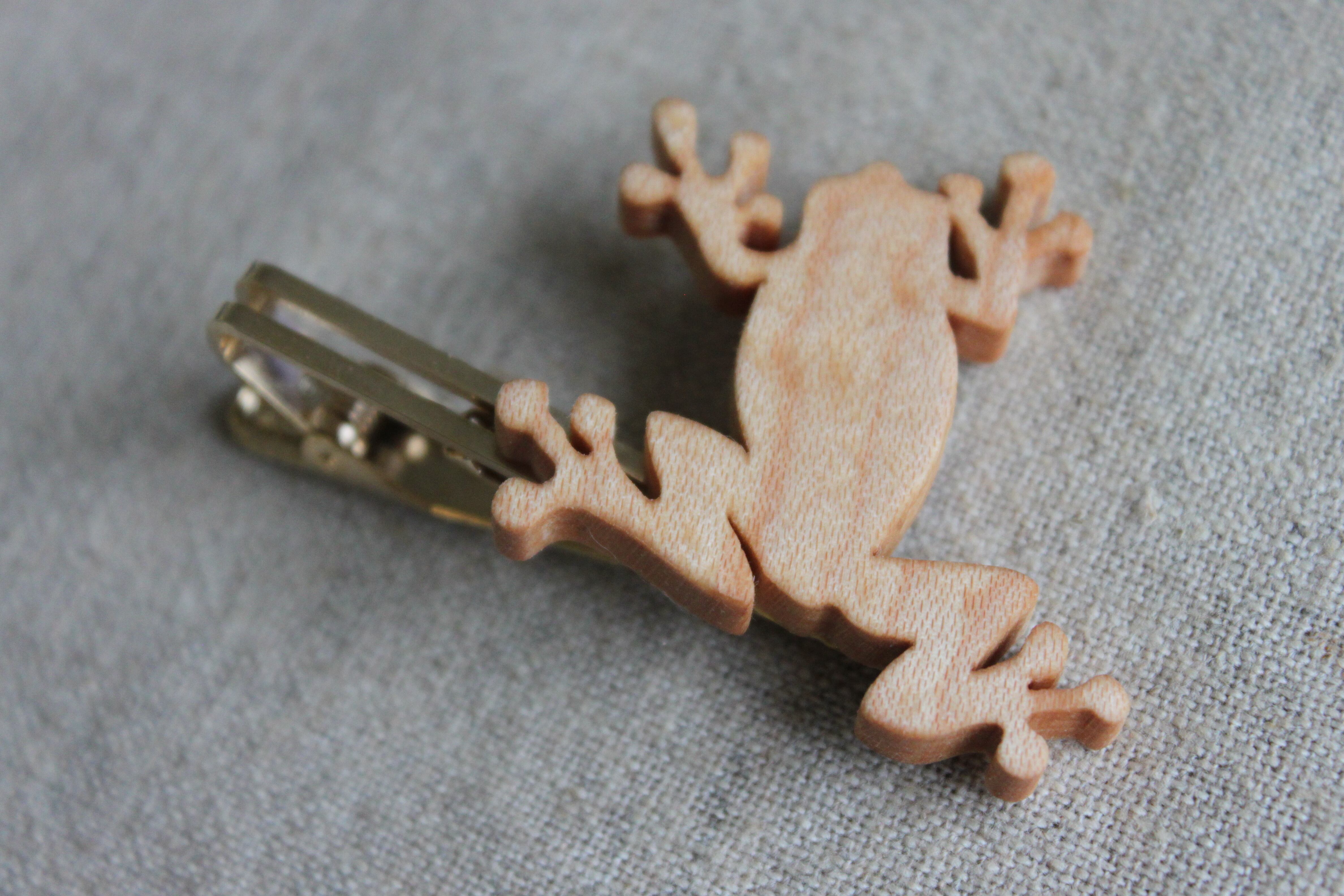 木材の木目、色を生かし丁寧に仕上げた他には無い一点物のネクタイピンです。